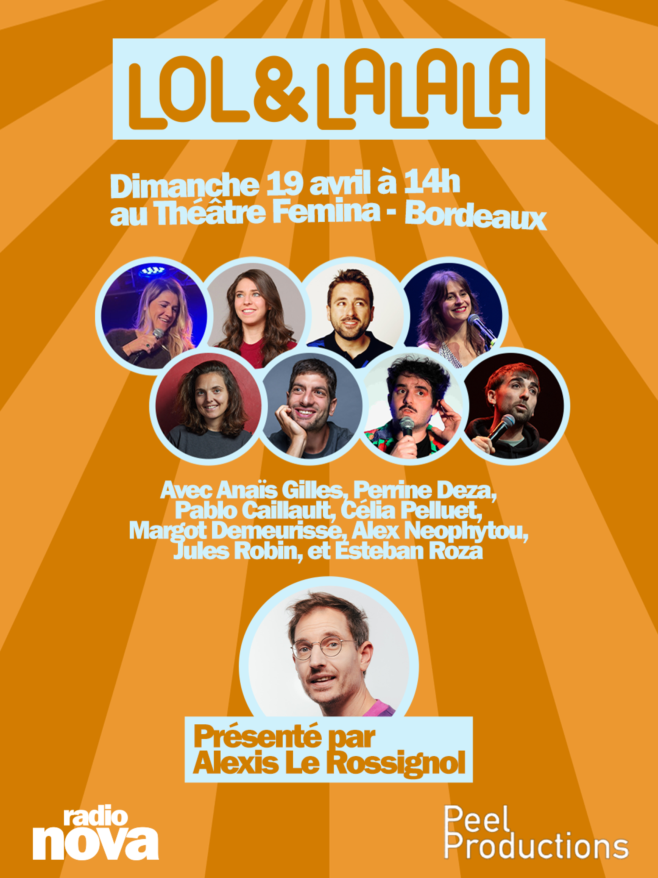 Juste avant notre émission phare, à partir de 14h, ne manquez pas le Lol&Lalala Comedy club, qui se déroulera lui aussi au théâtre Femina. Venez découvrir la promotion 2026 du Lol&lalala Comedy Club, composée d’humoristes talentueux : Anaïs Gilles, Esteban Roza, Alex Neophytou, Jules Robin, Célia Pelluet, Margot Demeurisses, Perrine Deza et Pablo Cailhaut. Le plateau sera présenté par Alexis le Rossignol, chroniqueur trublion d’une station radio que l’on ne citera pas ici.