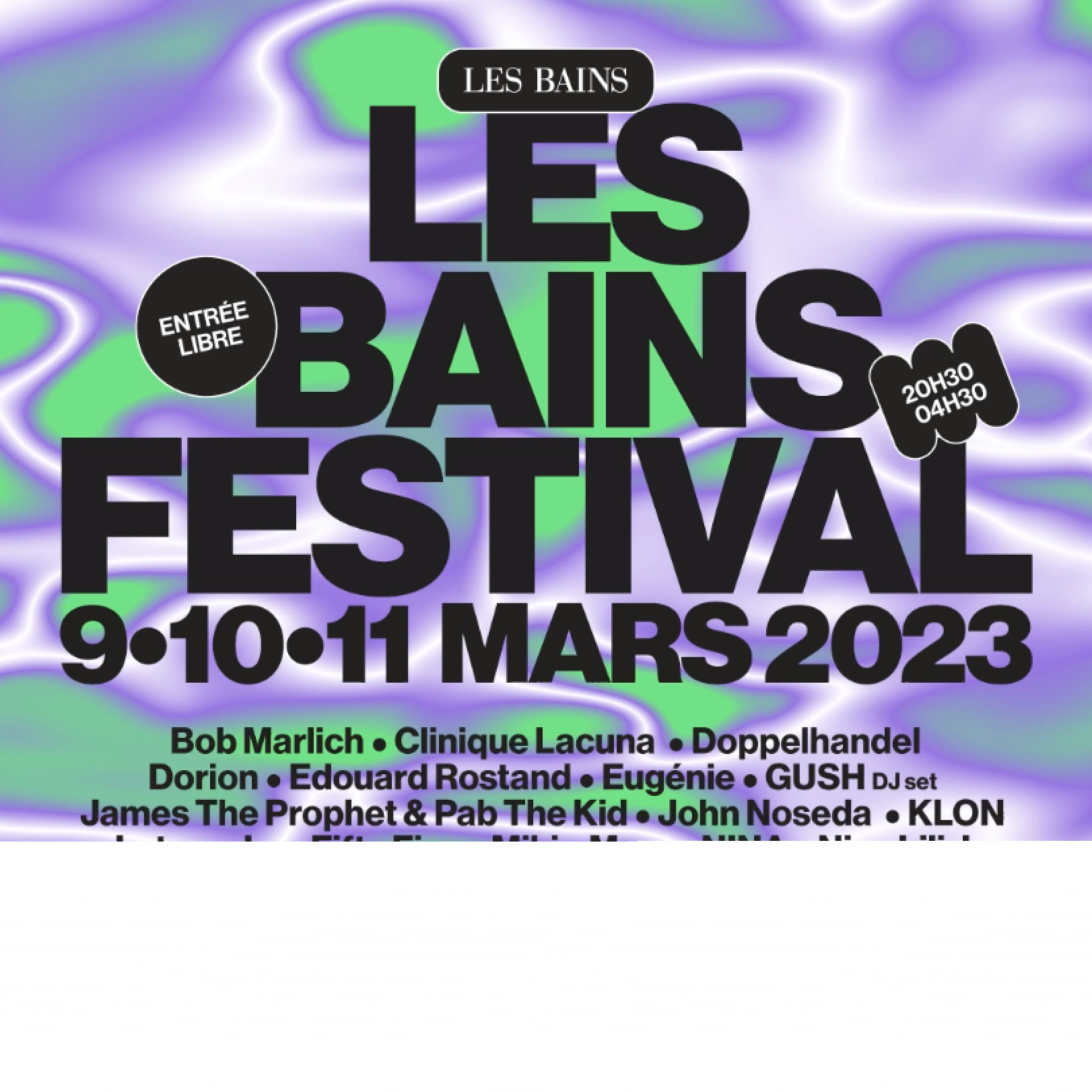 Depuis 2017, l’établissement accueille également un événement annuel : Les Bains Festival. Trois jours de musique dédiés à la scène émergente, durant lesquels “les portes sont grandes ouvertes à toutes et à tous”, selon Jonathan Fogli et Théo Athlani, les deux programmateurs et directeurs artistiques du festival.  “Nous avions envie de créer le nouveau rendez-vous des musiques actuelles, et offrir un tremplin à la jeune création”. La particularité du festival est aussi sa gratuité, parti pris pour “inciter un public varié à venir découvrir le lieu et les artistes sans contrainte”. En effet, pas moins de 30 artistes ont foulé les deux scènes durant l’événement, certain·es pour balancer des punchlines tranchantes (Bob Marlich, James The Prophet et Pab The Kid…), ou enchanter avec des mélodies entêtantes (Nina Lili J, Leo Fifty Five…), tandis que d’autres ont envoyé des DJ sets jusqu’au bout de la nuit (Tatyana Jane, Rebequita…).
