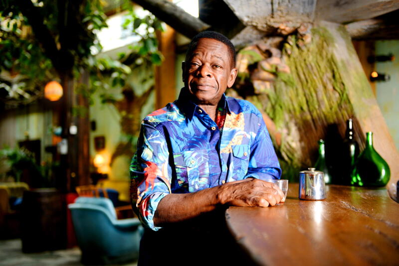 Né en 1945 à Kinshasa de parents immigrés angolais, Sam Mangwana porte en lui cet exil et cette curiosité et soif de voyage. Bercé aux sons des indépendances et notamment de la rumba à la fin des années 50, le chanteur fait partie de l’époque où naît le panafricanisme.