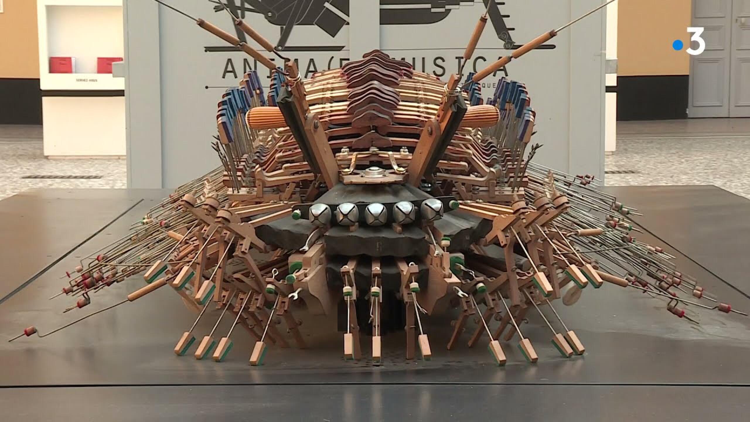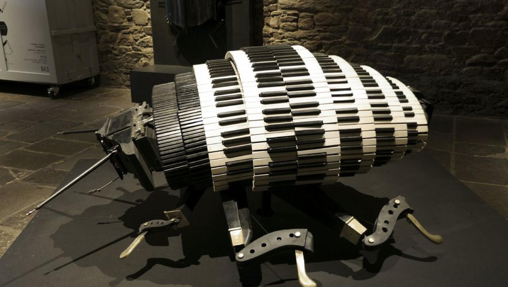 Pour l’exposition Anima (Ex) Musica, le collectif Tout Reste à Faire a rassemblé des instruments hors d’usages pour fabriquer des structures imposantes. Violons, guitares, clavecins, harmonicas et autres sources de son sont ainsi assemblées pour former des sculptures d’arthropodes, (insectes et crustacés) géants. Dans les couloirs des Champs Libres de Rennes, la mécanique reflète l’organique le temps d’une exposition.