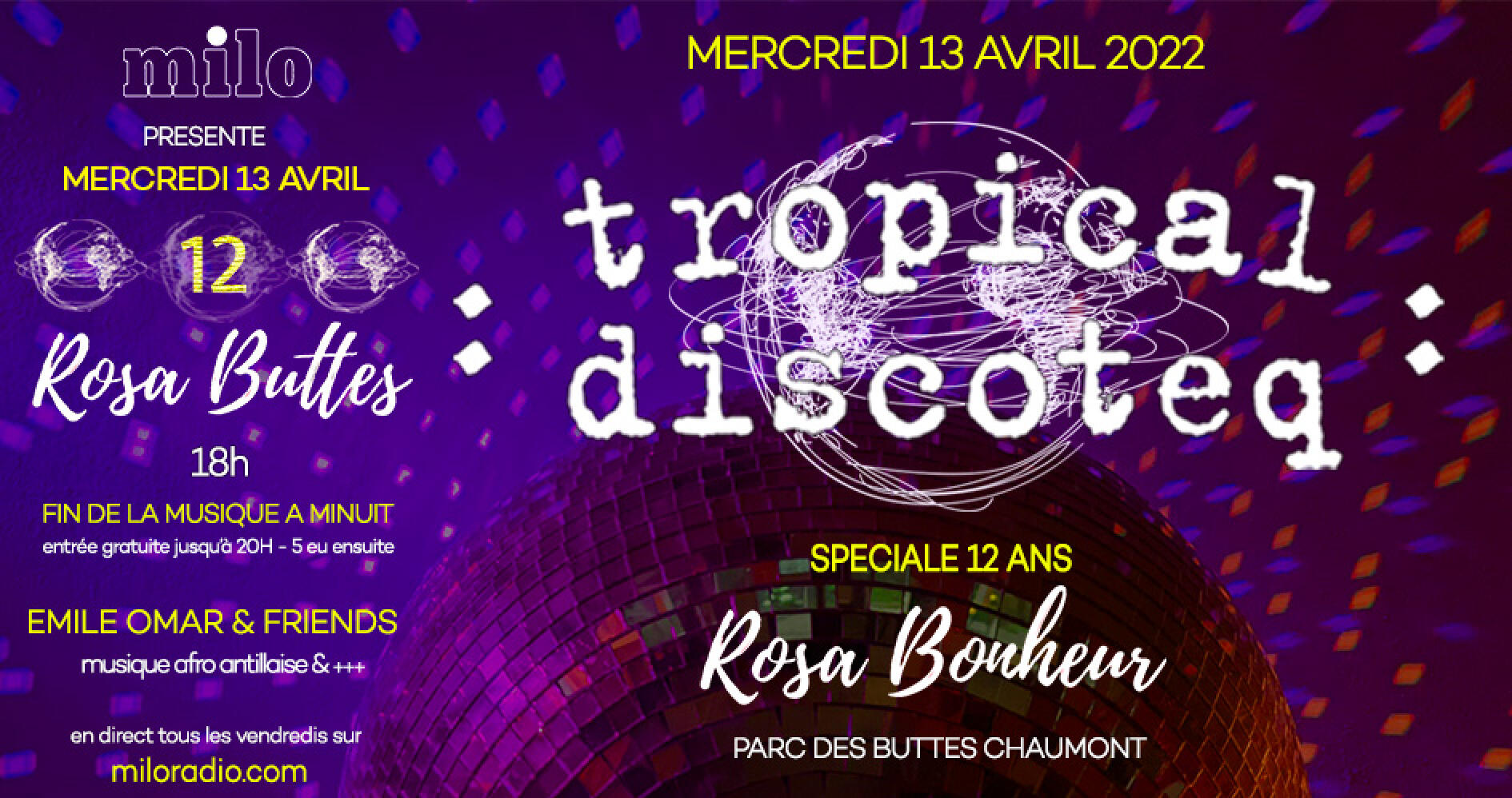 La soirée TROPICAL DISCOTEQ fête ses 12 ans au Rosa Bonheur le mercredi 13 avril.