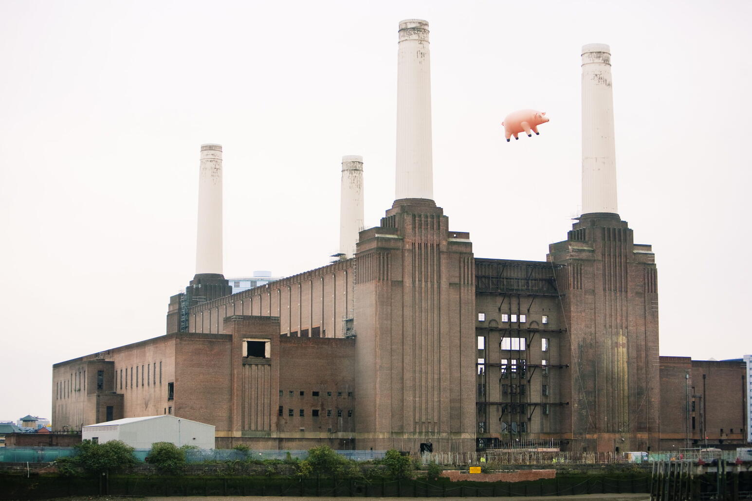 Si vous êtes déjà allé à Londres, vous avez sans doute vu, de près ou de loin, la Battersea Power Station qui fut durant de longues années l’une des premières grandes centrales électriques au charbon d’Angleterre. C’est cette usine, devenue aujourd’hui bâtiment historique, que Pink Floyd avait choisi en 1977 pour orner la pochette de son 10ème album, Animals… avec toutefois un détail supplémentaire, un ballon gonflable en forme de cochon.
