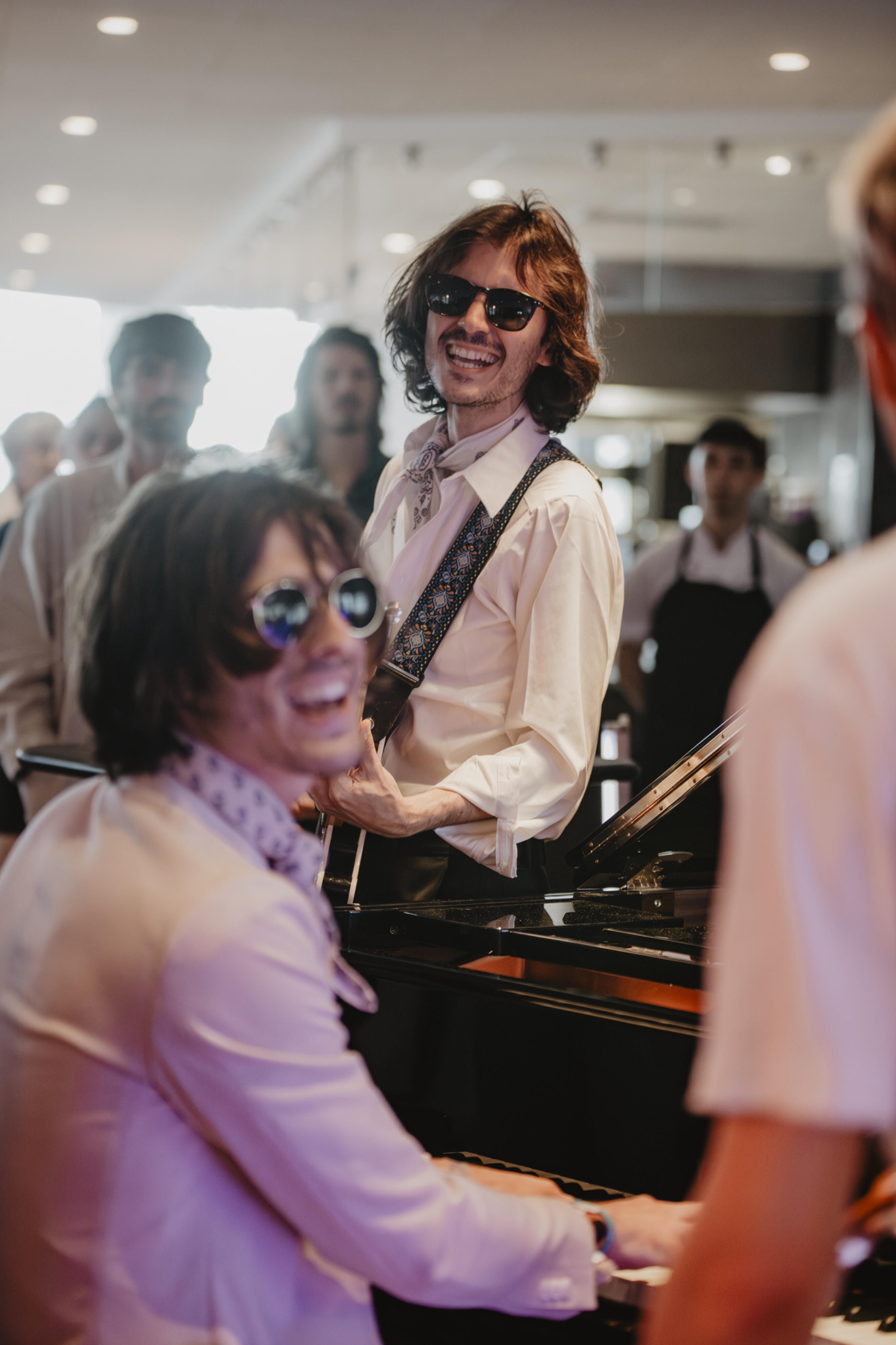 S’il y a bien une rencontre que les artistes du Summer Mountain Festival n’oublieront pas, c’est bien celle avec les juniors de la programmation, le groupe Sasha Dansant. Le trio est composé de Thomas, Brieuc et de son leader Sasha, un “dandy optimiste” comme il se décrit. Le groupe n’est pas à sa première expérience avec Club Med Live. Ils se sont rendus trois mois plus tôt à Val d’Isère, pour y faire du ski et des concerts grâce au tremplin organisé par le programme. Inspirés par la vibe ambiante, un jour de ramasse, ils composent un nouveau morceau dans leur chambre et le font aussitôt écouter à un « G.O » (NDLR : un employé) du Club Med (qui valide).
