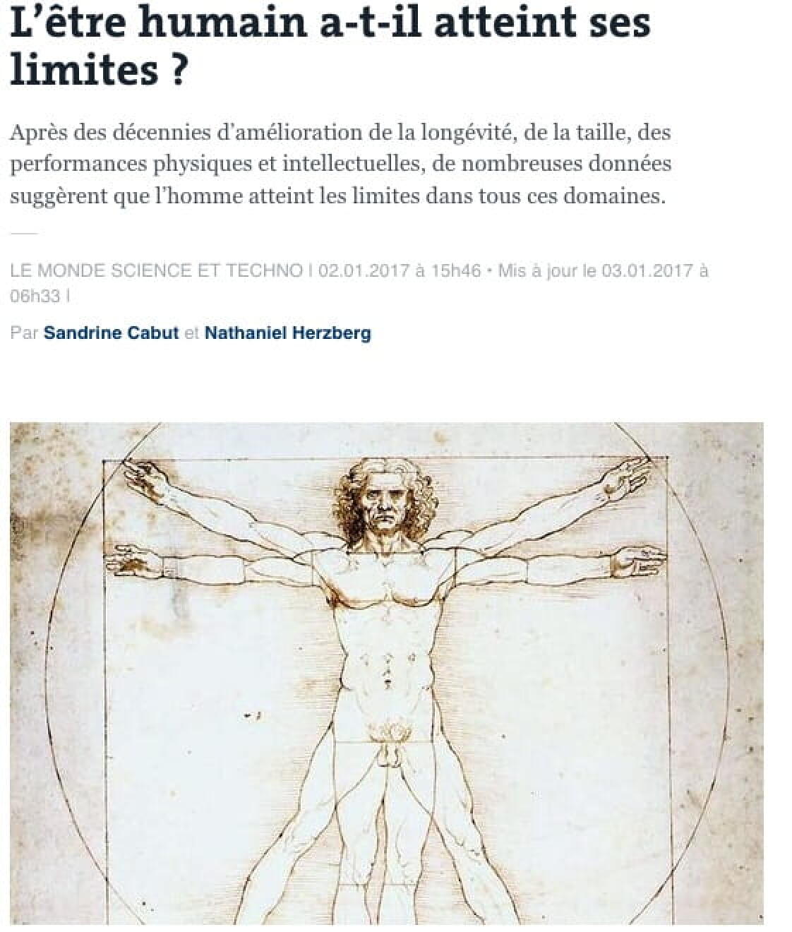 Les homme c’était mieux avant. C’est en tout cas ce que déclare James Flynn cité par le Monde dans un article consacré aux limites que l’homme aurait atteint dans tous les domaines : « Nos enfants sont plus bêtes que nous, dit James Flyn dont les gosses doivent être ravis, et les leurs risquent bien d’être encore plus stupides »