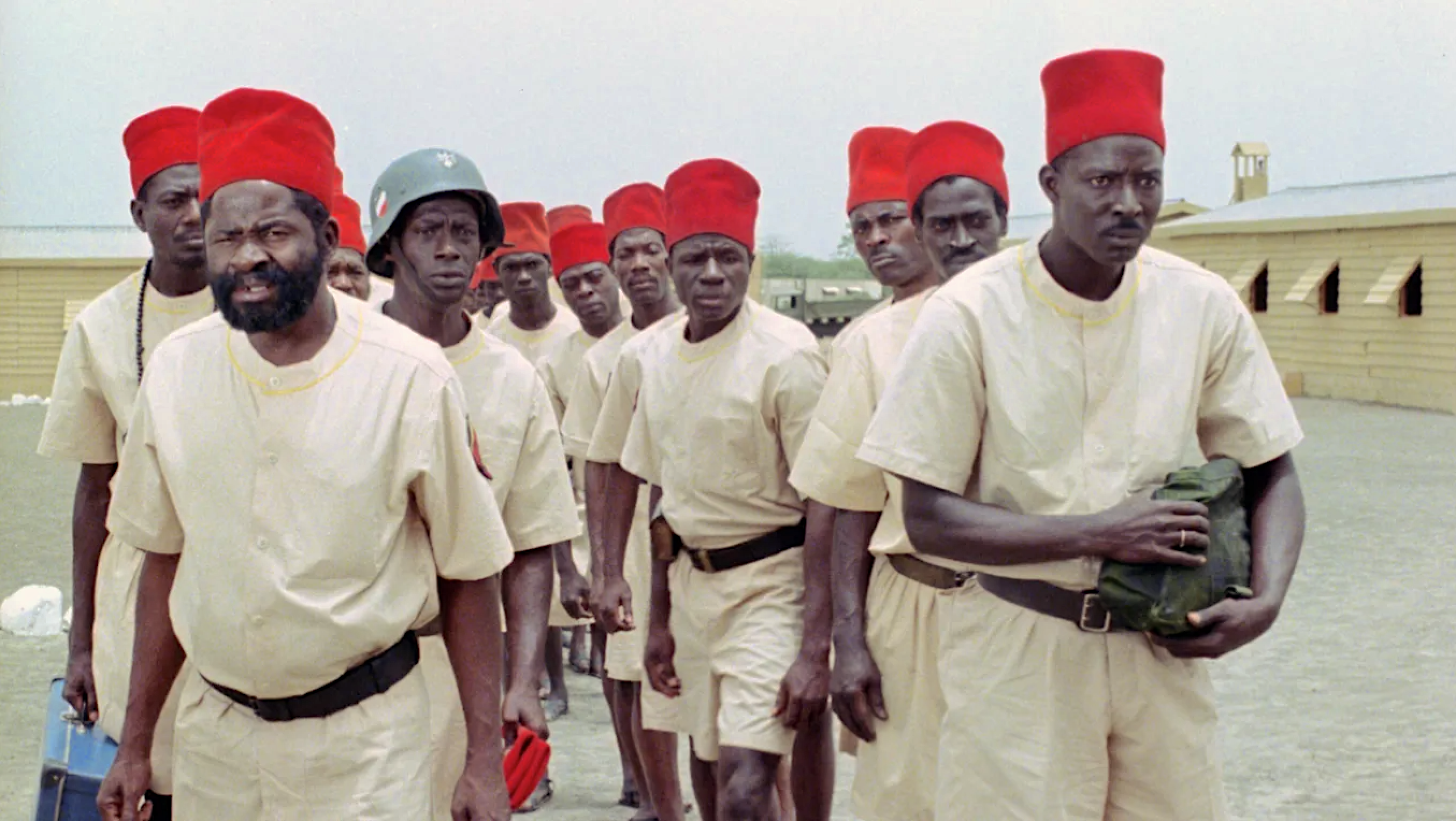 De ce drame accablant, l’une des tâches honteuses d’une histoire de France aux faux-airs de dalmatien, Thierno Faty Sow et Ousmane Sembène – lui-même ancien tirailleur – ont tiré un film de sable et de sang, une fresque de 2h30 : Camp de Thiaroye. Prix spécial du jury à la Mostra de Venise 1988, le métrage a, pourtant, longtemps été invisible sur les écrans français. Censuré, il a fallu attendre les années 2000 pour que l’étau se desserre, pour que le tout-venant hexagonal découvre – enfin ! – le morceau de tragédie caché derrière ces visages à chéchia ornant jusqu’ici, barrés d’un sourire niais, les boîtes de chocolat instantané (à ce sujet, vous pouvez voir L’Ami Y’a Bon de Rachid Bouchareb comme un prequel aussi minimal qu’archétypal).
