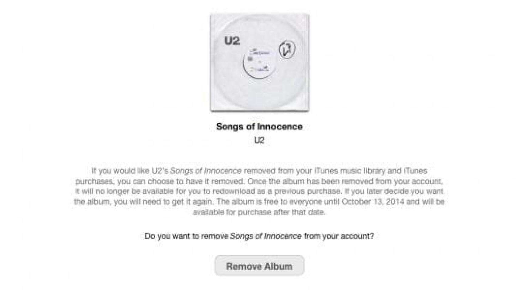 Et pour supprimer votre copie de « Songs Of Innoncence » de U2 c’est par là.