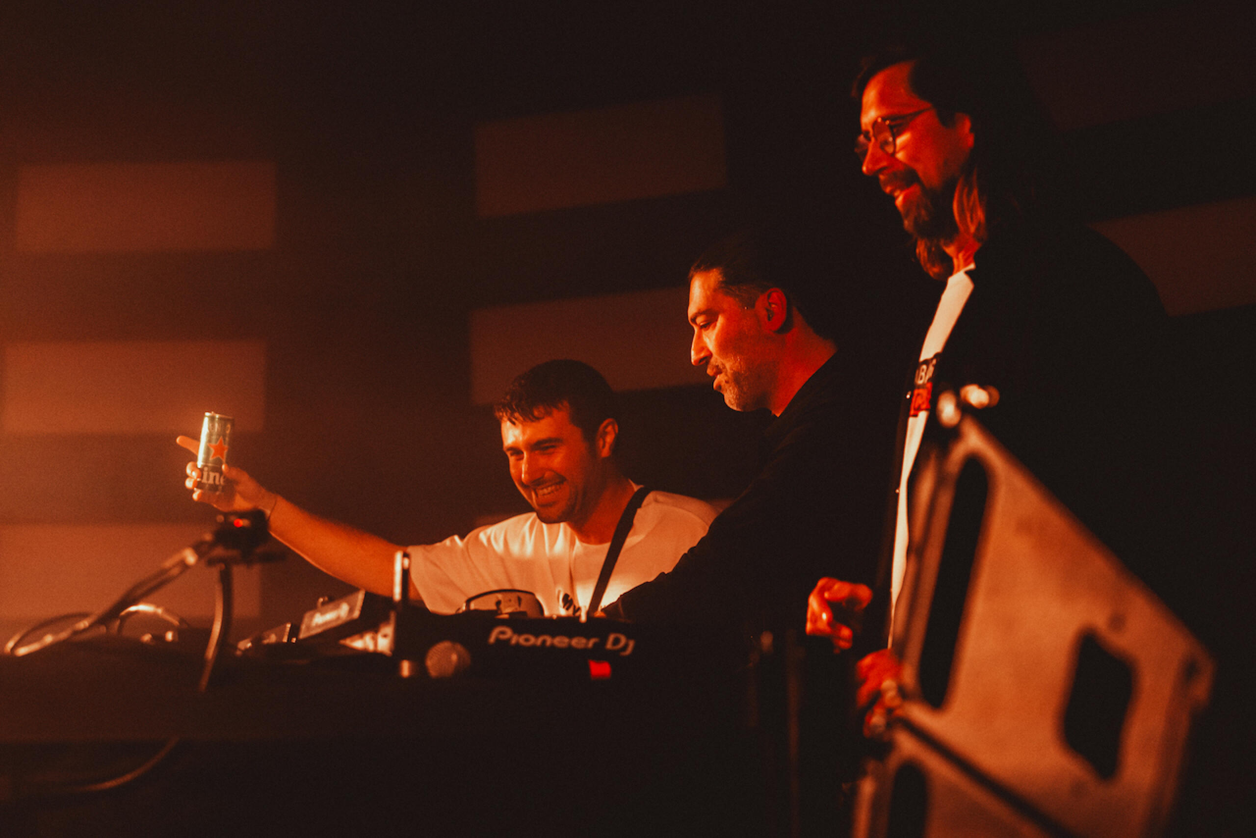 Aux alentours de 2h40, l’ambiance atteint un nouveau palier : Fred Again.. surgit sur scène. La veille encore, il mixait à Lyon dans le cadre de son USB Tour — et le voir apparaître dans les entrailles de Beaubourg a l’effet d’une déflagration. À 2h50, le nom de Thomas Bangalter s’affiche sur les écrans géants derrière les platines. La foule se resserre, les cris montent, l’adrénaline sature l’air. Ce qui suit tient du mythe : un b4b à huit mains, aussi inattendu qu’historique entre Bangalter, Fred Again.., Erol Alkan et Pedro Winter. Quatre générations de la musique électronique réunies, le temps d’un instant suspendu. Bangalter glisse son edit de « Signatune » de DJ Mehdi, en hommage à son ami disparu. Un moment de grâce au cœur d’un musée qu’il avait côtoyé, à ses débuts, lors des soirées Armistice avec un certain Guy-Man. Des moments fondateurs pour ce qui deviendra l’un des duos les plus emblématiques de la musique électronique.