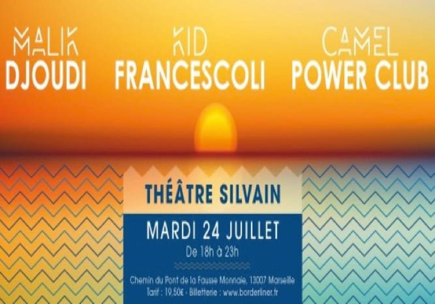 Malik Djoudi, Camel Power Club, Kid Francescoli au Théâtre Sylvain (sur la corniche après le Vallon des Auffes – 13007). Ouverture des portes : 18h. Premier concert : 19h15 – Tarif unique : 19,50 €