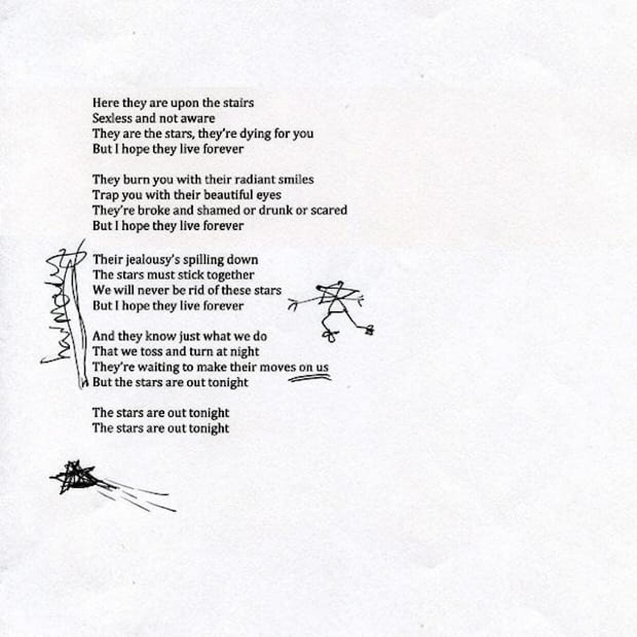 Ci-dessous les paroles de la chanson, dument raturées et corrigées, par l’artiste :