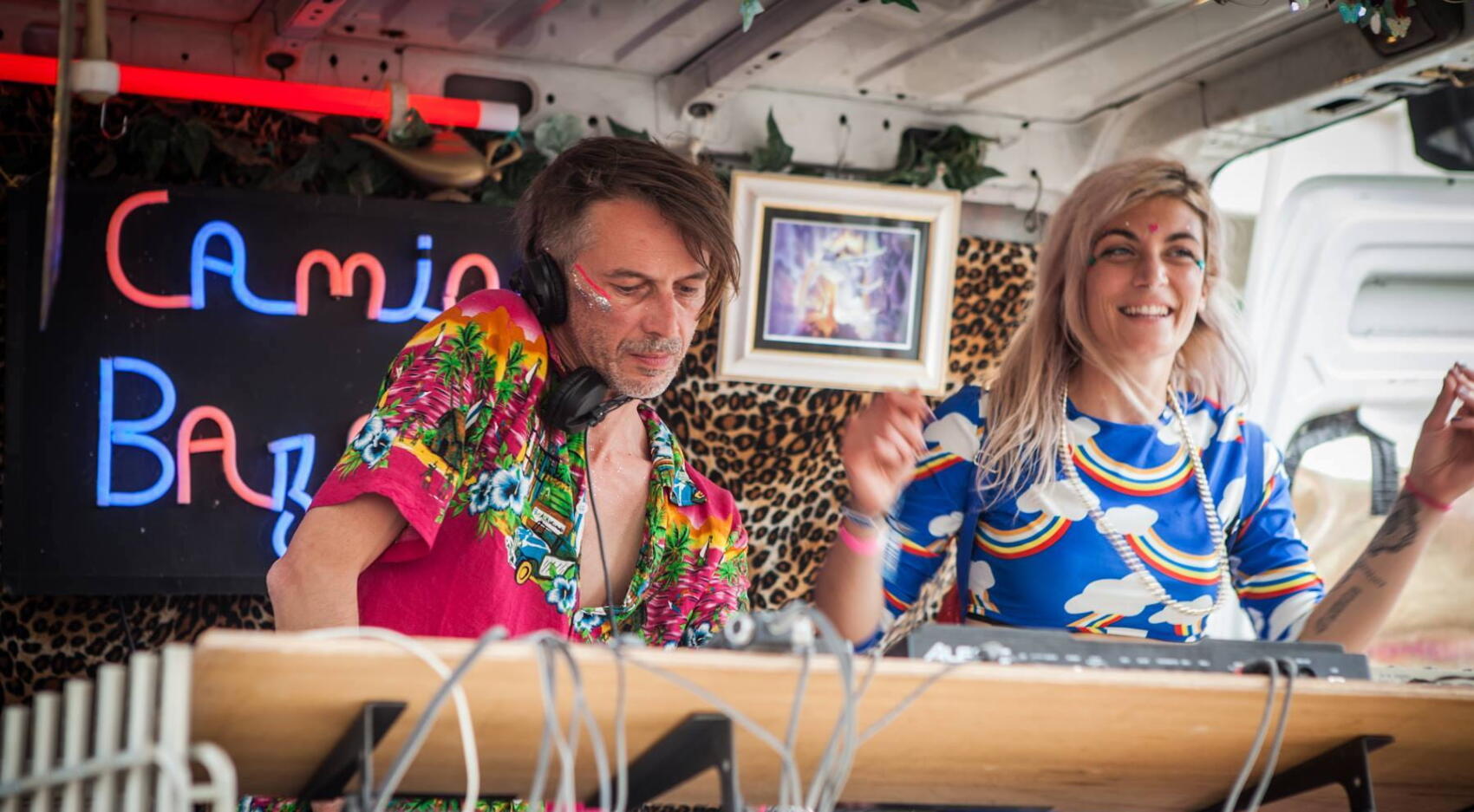Narguant les radars avec une insolente exubérance, leurs mixes déjantés envoient ceux qui les écoutent dans un monde parallèle où Dionysos a mis une grosse pile à Apollon. Les ingrédients de la bonne came du Camion ? Dix fois plus d’énergie que vous n’en trouverez jamais dans un pack de Red Bull, des paillettes à foison, des déguisements, une flopée de bons disques discoïdes et electro bien sûr, mais aussi une absence totale de gravité. Alors, hop, on éteint les loupiotes du surmoi et on dérouille ses articulations ; place aux yeux rieurs et aux oreilles en joie, pour reprendre les termes de Camion Bazar, puisqu’ils visent juste.