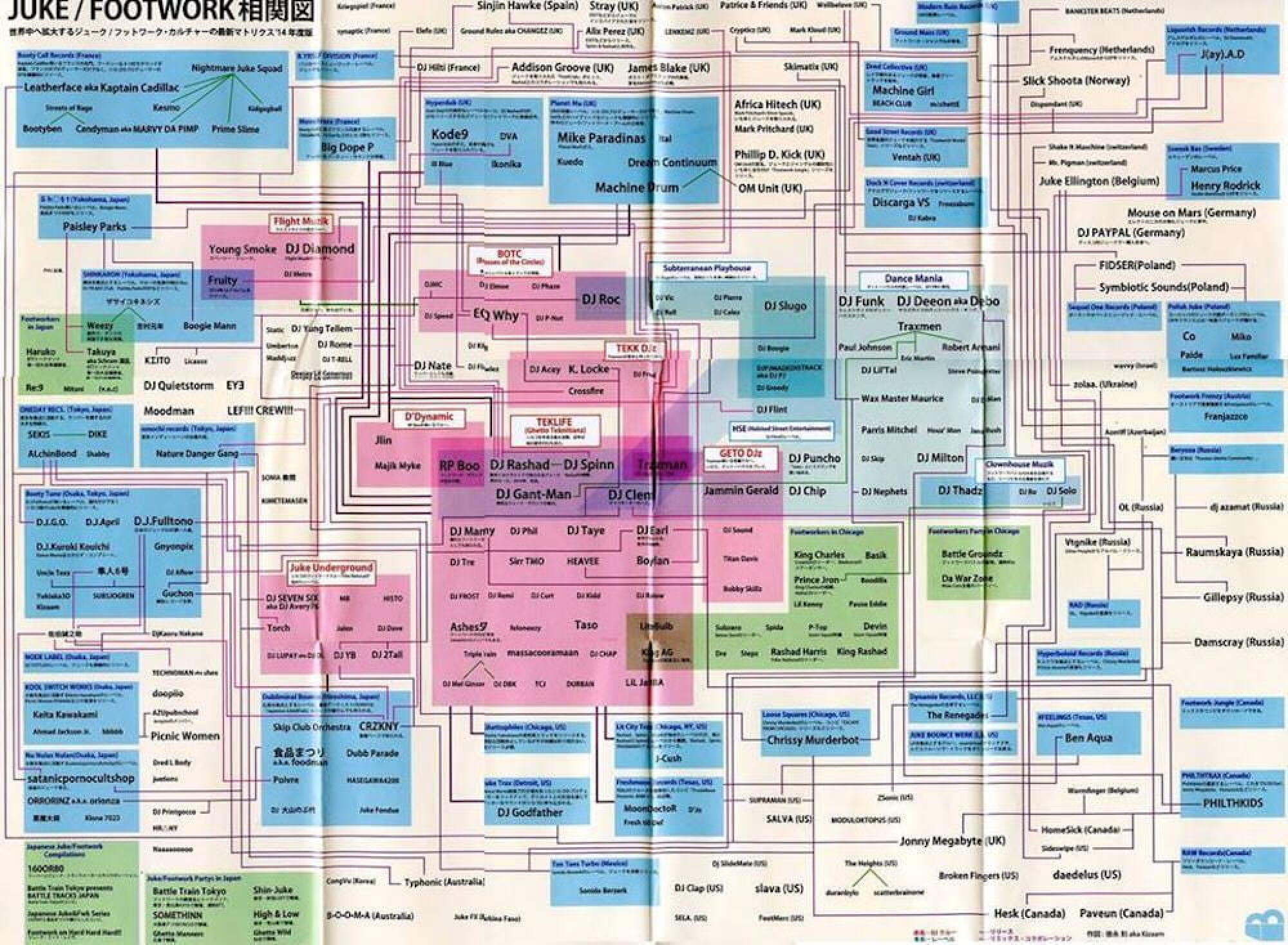 Le footwork est ce style musical et cette danse typiques de Chicago qui ont été popularisés par le clip « Watch My Feet » de Dude N Nem, groupe de « Chicago Juke » – un style de musique héritier de la ghetto house. Vous trouvez cela compliqué ? Attendez de voir le véritable arbre généalogique de cette culture, construit par le label japonais Booty Tune.
