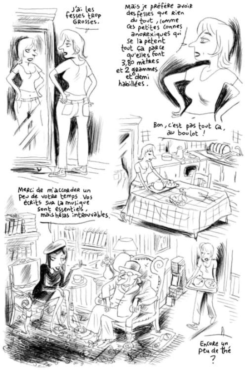 Au niveau du dessin, je n’ai pas les capacités graphiques de Moebius, mais j’essaye d’aller dans ce sens-là. Quand j’ai fait Sacha [2009, éditions… Cornelius !], je suis parti d’un récit totalement improvisé. Une fois, Moebius m’a dit : « Tu devrais essayer de dessiner différemment, n’aie pas peur de ne pas coller à ton style. » La question n’est pas de copier le sien, mais d’être éduqué par un état d’esprit, un rapport au dessin ou au récit. Je suis ce conseil, j’entends cette voix tous les jours, dès que je me mets à travailler : « Ne tiens pas compte de ce que tu as fait hier. C’est acquis, c’est une base sur laquelle tu peux essayer de… rebondir sur autre chose. »
