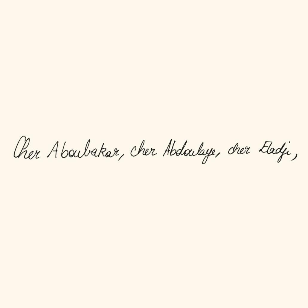 « Cher Aboubakar, cher Abdoulaye, cher Eladji, je vous écris sans passer par la Poste. C’est ma petite vengeance personnelle, bien loin de votre courage. »