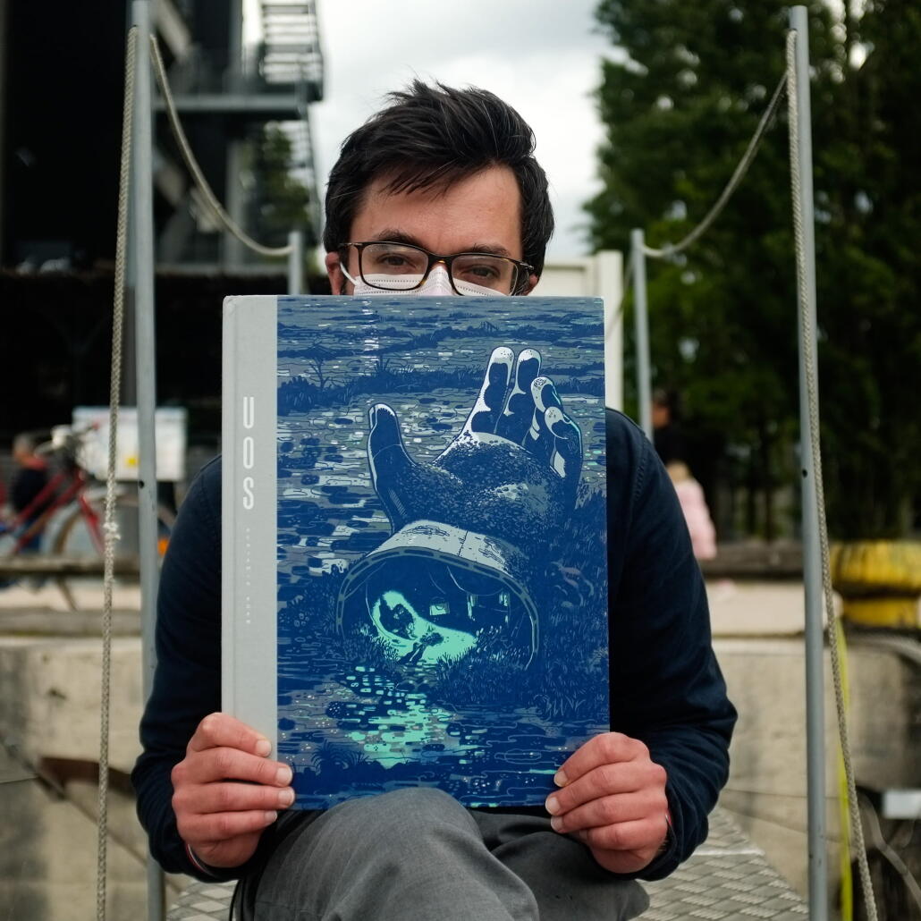 Alors qu’il écoutait une émission sur Les Compagnons de la Libération, Maxime se rend compte que sa vie à lui n’a rien de mémorable. Il se plonge alors dans la BD UOS de Benjamin Adam qui voit, dans un monde post-apocalyptique, un homme vivre de ses souvenirs.