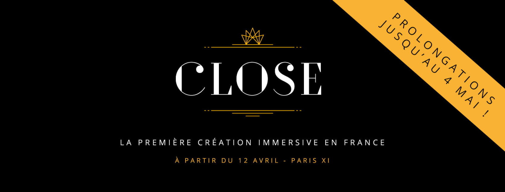 Cie Big Drama | ”Close” | du 12 avril au 4 mai dans un lieu tenu secret (11° arrondissement de Paris) | séances à 19h30 et à 21h30 | Page facebook de la Compagnie Big Drama ici | Billetterie ici.