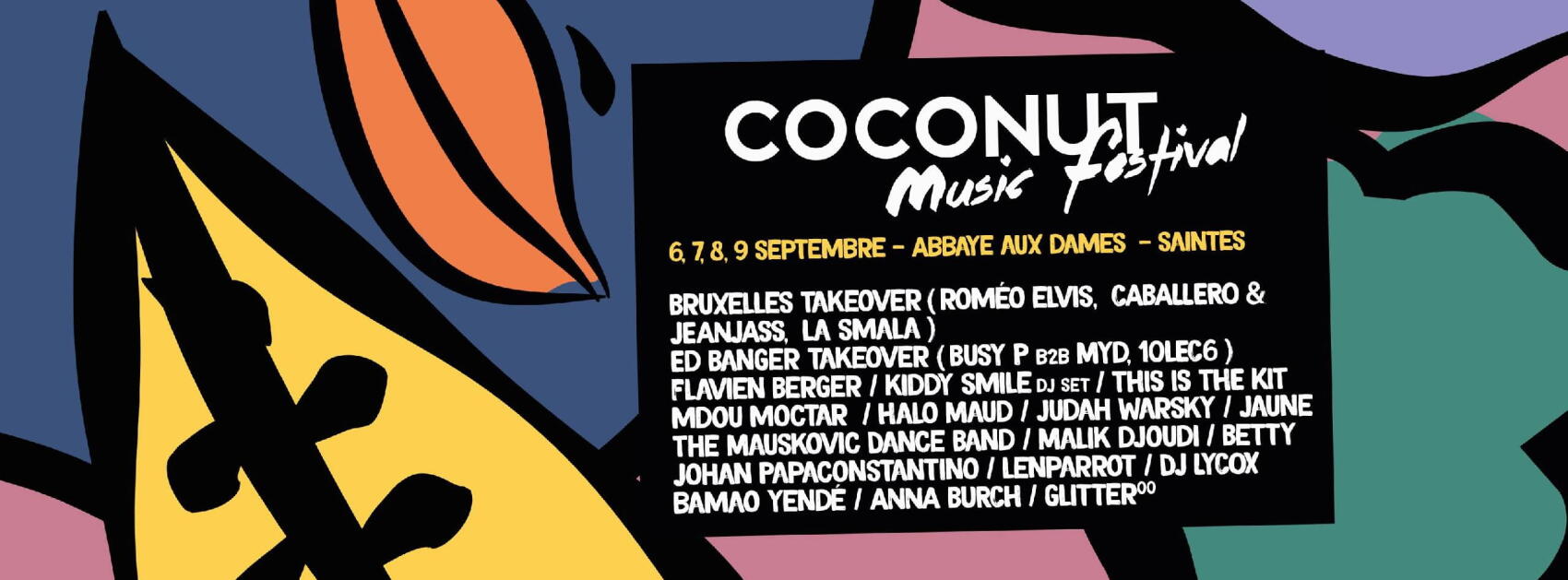 Coconut Music Festival, du 6 au 9 septembre, Abbaye aux Dames, Saintes. Toutes les infos ICI.