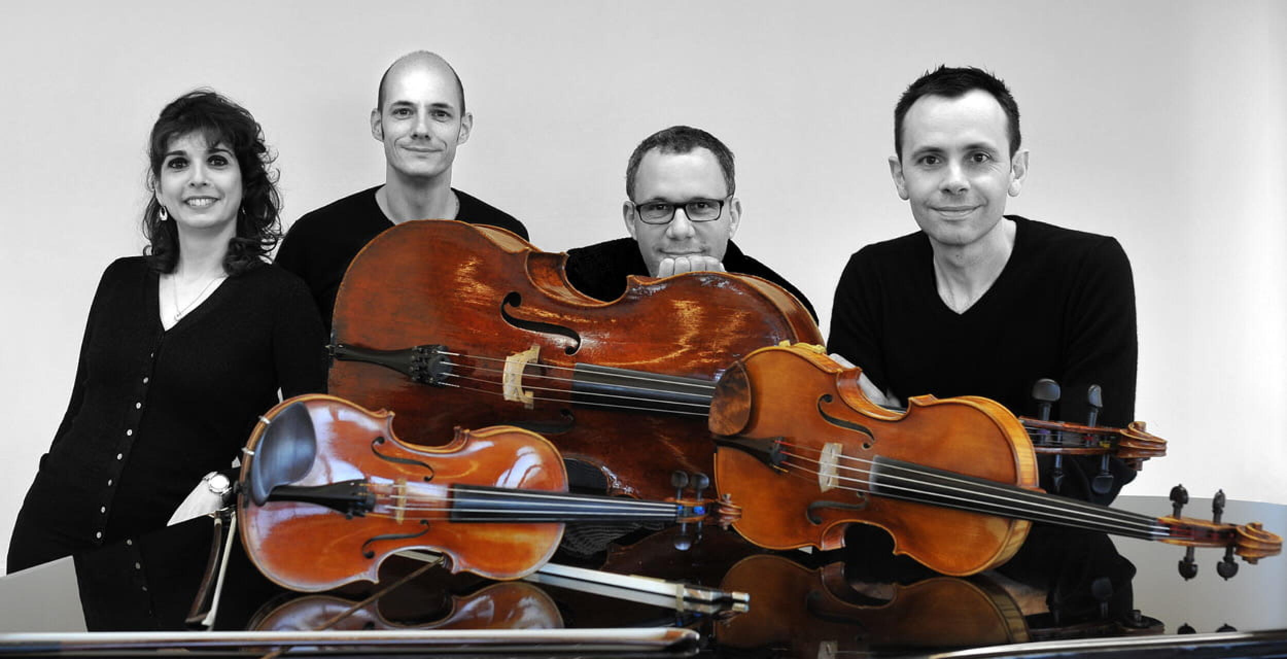Alors, pourquoi ne pas s’aventurer vers l’Est ? Vers les czardas hongroises, la sirba roumaine, la ziganka russe et autres gambilles slaves, jouées par des instrumentistes chevronné.es de la maison bordelaise. C’est-à-dire deux violons (Stéphane Rougier, Jean-Pierre Morel), un alto (Nicolas Mouret), une contrebasse (Mathieu Sternat), un violoncelle (Alexis Descharmes) et un piano (Sophie Teboul-Rougier, à quelques jours de son anniversaire). Des musicien.nes dont voici une partie de l’effectif en photo, pour celleux qui aiment découper les photos des concertistes pour les coller dans un cahier à la façon des vignettes Panini de Mbappé, Laborde ou Gouiri.