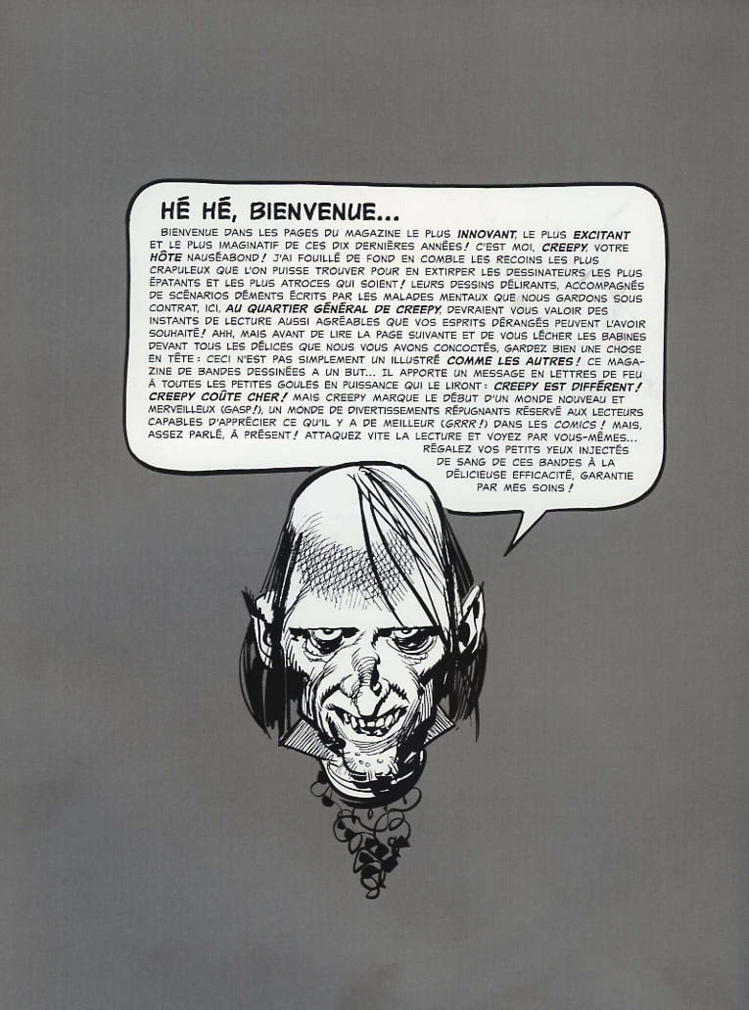 « Creepy », c’est cette revue de BD d’horreur et de fantastique lancée par Warren Publishing et inspirée des comics classiques américains « EC » des années 50, et qui s’est immiscée dans les consciences avides des années 60 au début des années 80.