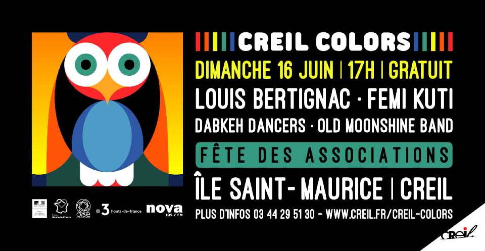 Creil Colors : Louis Bertignac + Femi Kuti + Old Moonshine Band + Dabkeh Dancers | le 16 juin de 17:00 à 22:00 à Creil | Gratuit pour tous | Evènement facebook ici | Site ici.