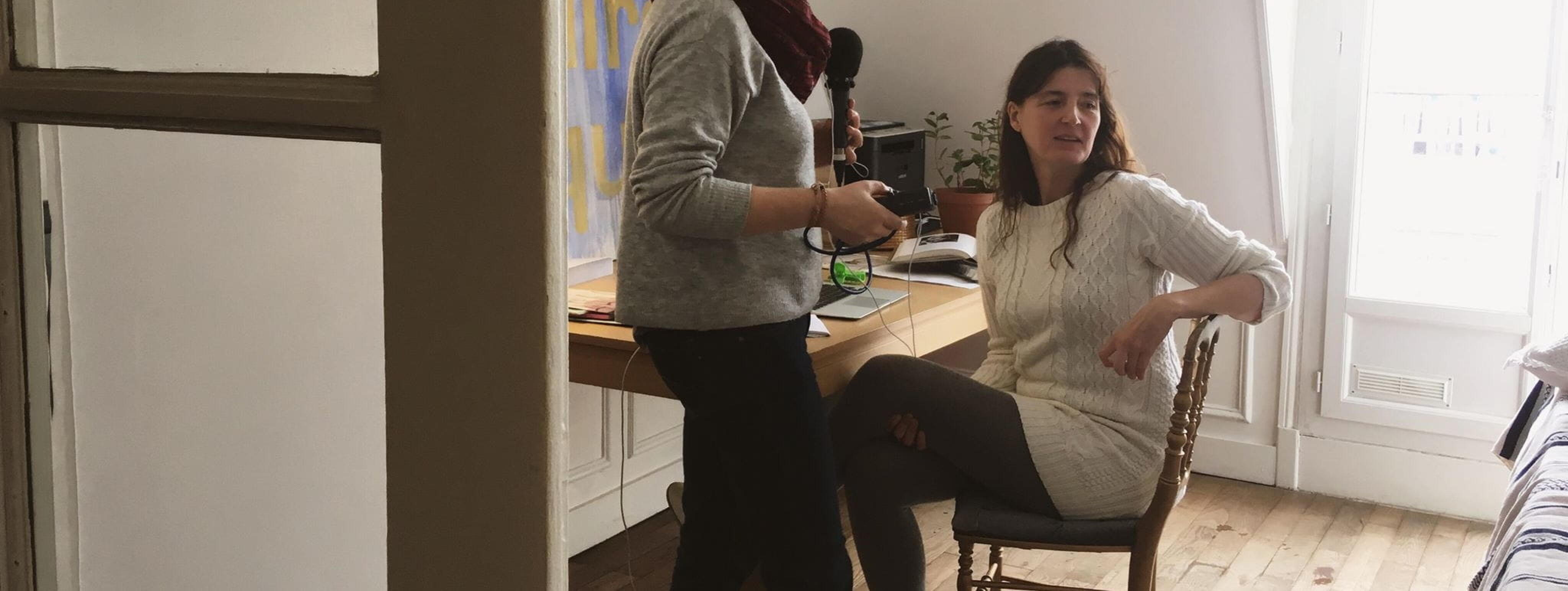 Toujours dans son appartement, elle expose sa journée type d’autrice contemporaine, entre écriture pour elle, ateliers d’écriture pour les autres et contraintes routinières de maman d’un jeune garçon. Posé sur son bureau, également, un tableau, qui représente selon elle le moment où elle est passée de la peinture, sa première passion, à l’écriture.