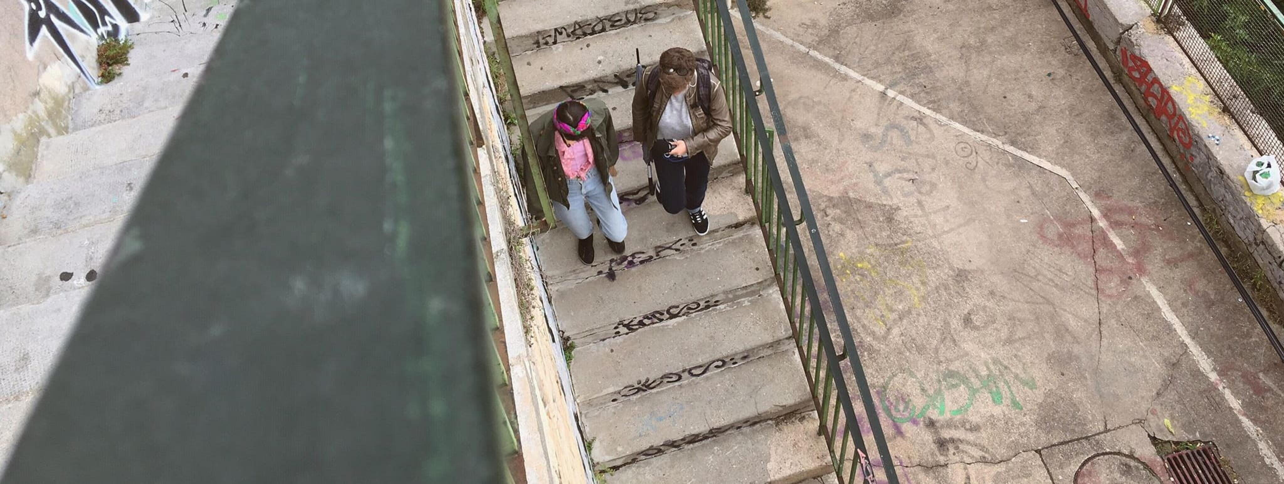 Toujours en chemin vers le parc de la tête d’or, Marthe Jung vous fait descendre les très nombreuses marches depuis la place Bellevue vers le pont Winston-Churchill tout en parlant d’amour, de coeurs dessinés et de pin-ups aux joues rouges.