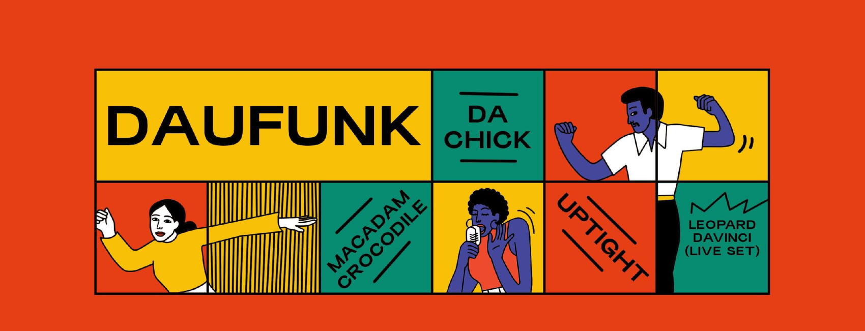 Pour égayer les oreilles tendus des festivaliers, cette année comptez sur Uptight, Macadam Crocodile, Da Chick et Leopard DaVinci pour faire partie du line up.