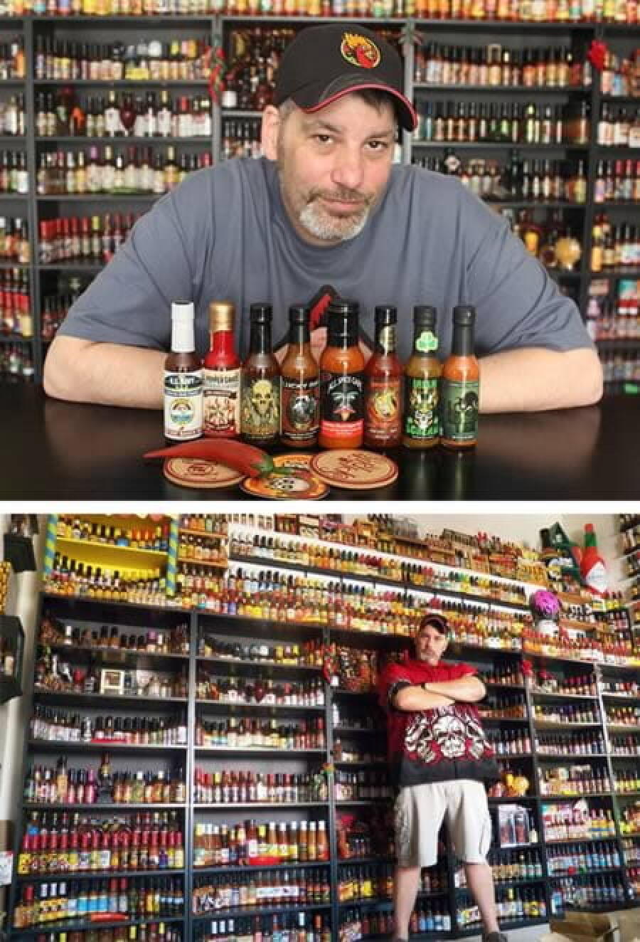 Cet homme doit aimer les plats épicés car sa collection s’élève à 6000 bouteilles de sauce piquante.