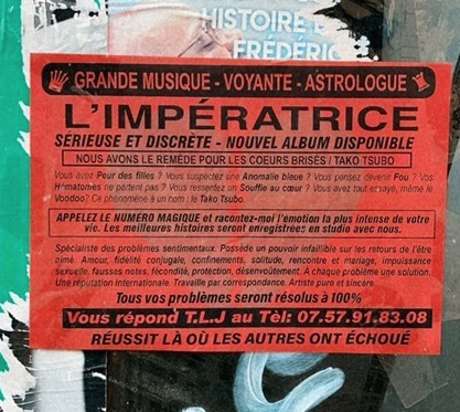 Trois ans après Mata Hari, l’Impératrice est de retour ces jours-ci avec un nouvel album, Tako Tsubo, c’est-à-dire le syndrome du cœur brisé en japonais, une expression qui décrit un cœur prêt à exploser lorsqu’il est soumis à des émotions trop intenses. Des émotions fortes aux couleurs pop, disco, funk ou rn’b, des petites histoires et des grandes aventures, c’est exactement ce qui vous attend avec ce nouvel album, à l’image de Peur des Filles en playlist sur Nova. Pour La Potion, Flore Benguigui et Charles de Boisseguin de l’Impératrice convoquent quelques-unes de leurs inspirations mystiques, d’Ella Fitzgerald à Plantasia de Mort Garson ou au bleu de Klein, avant d’entreprendre un débat sur la figure de la méchante sorcière… Déconstruction dans La Potion.