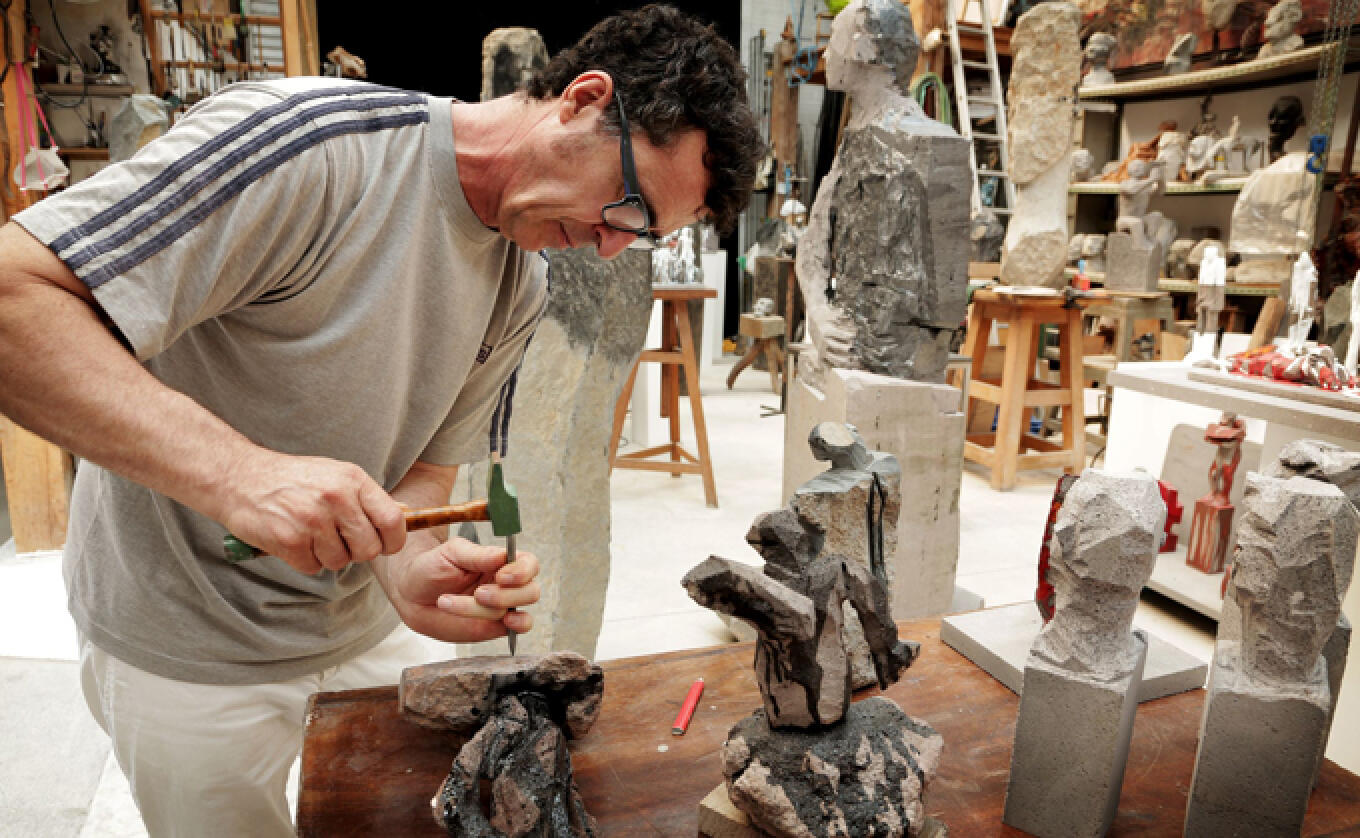 Sculpter le minéral. Façonner, comme une affirmation, un défi lancé à la finitude, la confrontation faite oeuvre du putrescible avec le tellurique, de l’esprit mortel avec la matière immortelle. De Rothéneuf au Mont Rushmore, des têtes olmèques aux jizô japonais, de Pygmalion, mythe superlatif de l’art statutaire grec, aux énigmatiques moaï pascuans, des sphinx aux bouddhas aux Vénus paléolithiques aux menhirs aux david aux christs rédempteurs, voilà une préoccupation qui a hanté l’humain sous bien des latitudes et des millénaires.