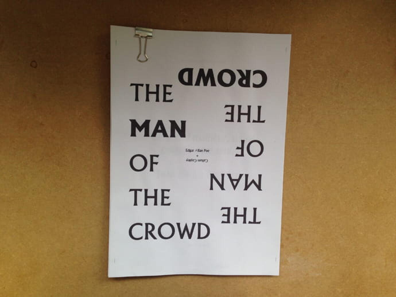 Quelques pas plus loin, je remarque un autre livre : il est posé sur une petite table qui repose sur une sorte de balançoire. Quand on s’approche de plus près, on remarque que l’artiste Callum Copley a créé un livre collaboratif, lisible des deux côtés du livre.