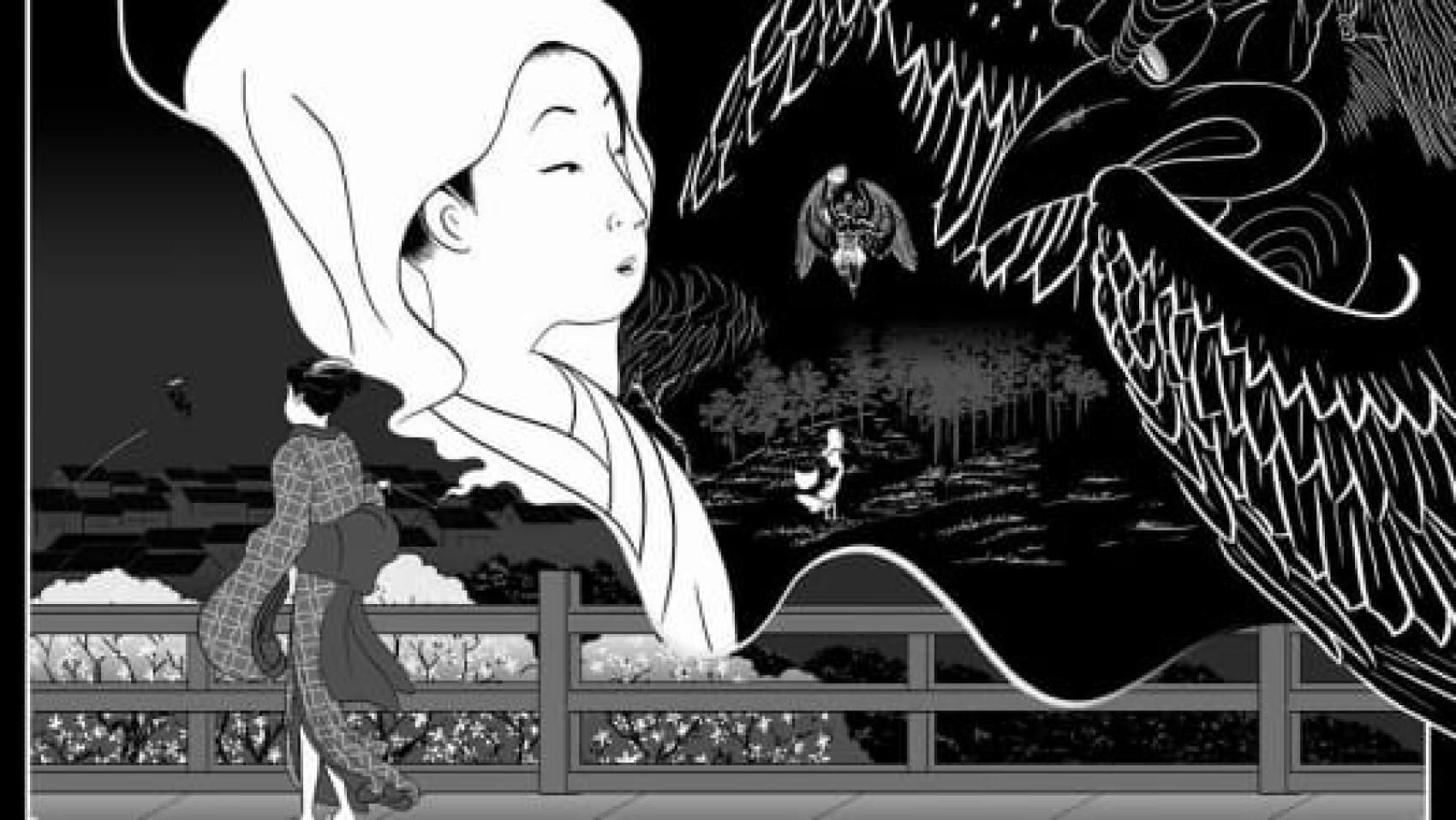 Ayant aperçu une bande dessinée à la manière des estampes japonaises, mais très réussie, et en même temps une sorte de manga, mais échappant aux clichés du genre, je fus charmé. Frappé par son travail à part, – et aussi raffiné que son ancêtre : finesse, élégance, nuance de gris, composition et mise en page parfaite, mais bien sur dans un tout autre domaine ,- je le contactai. Je le cite :