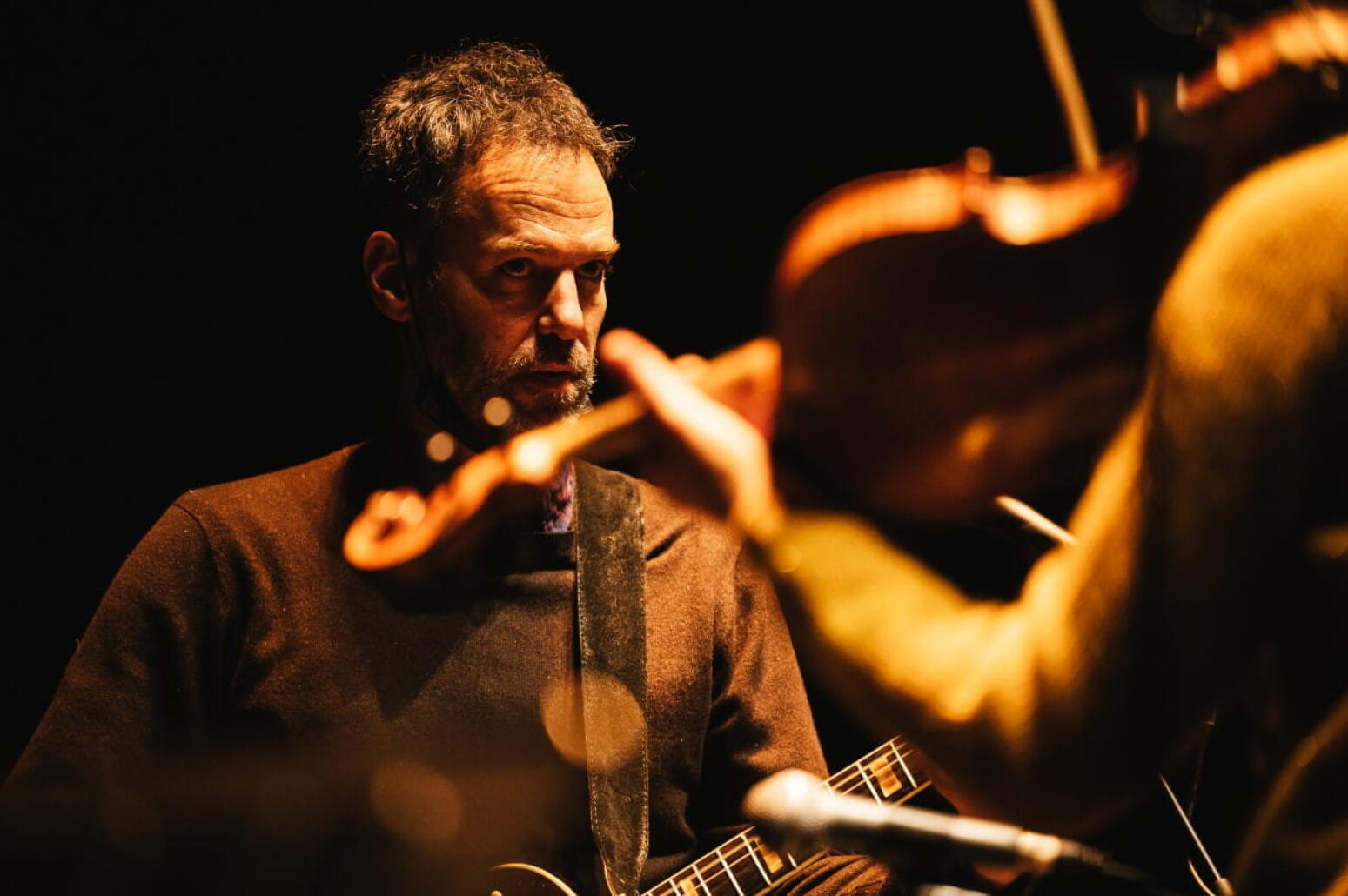 Mise en scène inédite de son dernier album “Shape of the fall” avec une orchestration complète, Piers Faccini explore les nombreux liens entre blues, sonorités traditionnelles d’Afrique et de méditerranée en fusionnant à merveille folk anglaise, pulsations gnaouas et quatuor à cordes. À ses côtés, les musiciens gnawas, figures du guembri, Malik Ziad et Mehdi Nassouli. Le batteur Simone Prattico avec les talentueuses Juliette Serrad au violoncelle et Séverine Morfin à l’alto, rejoint par le quatuor lyonnais Emana (les violonistes Laurent Pellegrino et Joschka Fléchet-Lessin, l’altiste Vincent Verhoeven et le violoncelliste Sylvain Linon). Guidé par le chanteur et guitariste anglo-italien, l’ensemble nous embarque dans un voyage captivant fait d’ambiances mélancoliques ou de transe. Cette complainte musicale de presque deux heures, jouée et chantée par Piers Faccini et son orchestre, s’interroge sur ce monde en mutation, au bord de l’effondrement, tout en nous donnant des notes d’espoir et de guérison par ces rythmiques et mélodies.