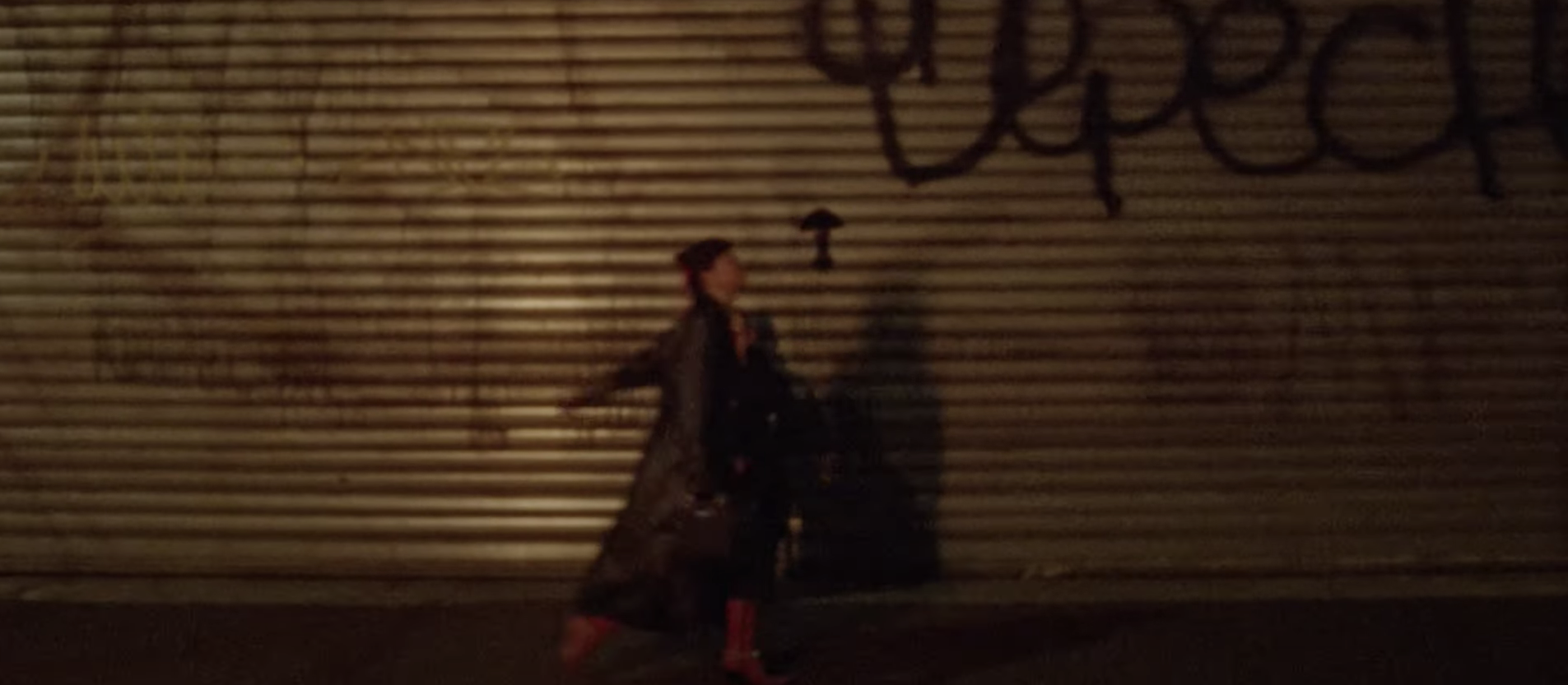 Vêtements de cuir, masques sur les visages, lunettes noires posées sur les yeux, pénombre monochrome… et une forme soudain, qui, au milieu de la foule et de cette rave aux ambiances très 90’s, apparaît et surgit d’un prisme lumineux. Les cartes sont à tirer et les sens mélangés, peut-être s’agit-il d’un rêve bizarre ou d’une altération du réel. « I’m bored. What an Hangout », comme il est dit au début du clip.