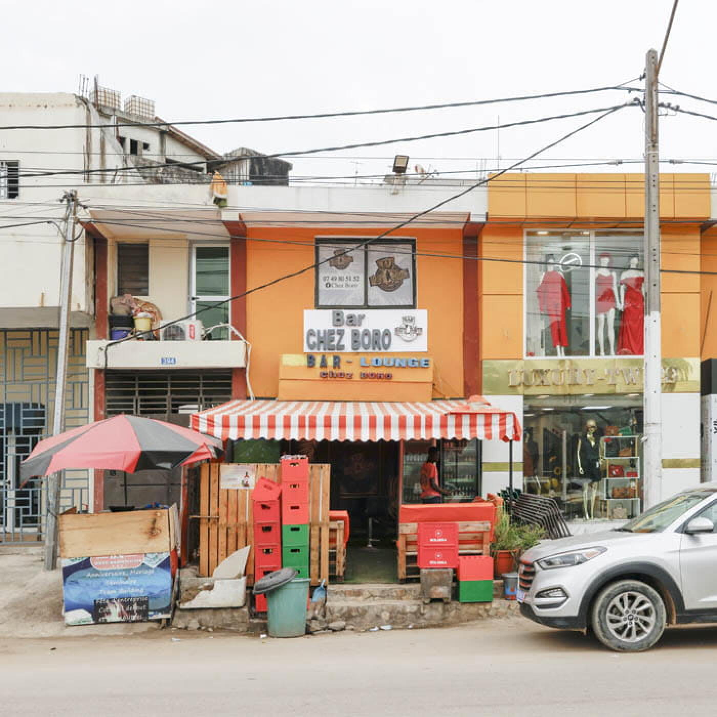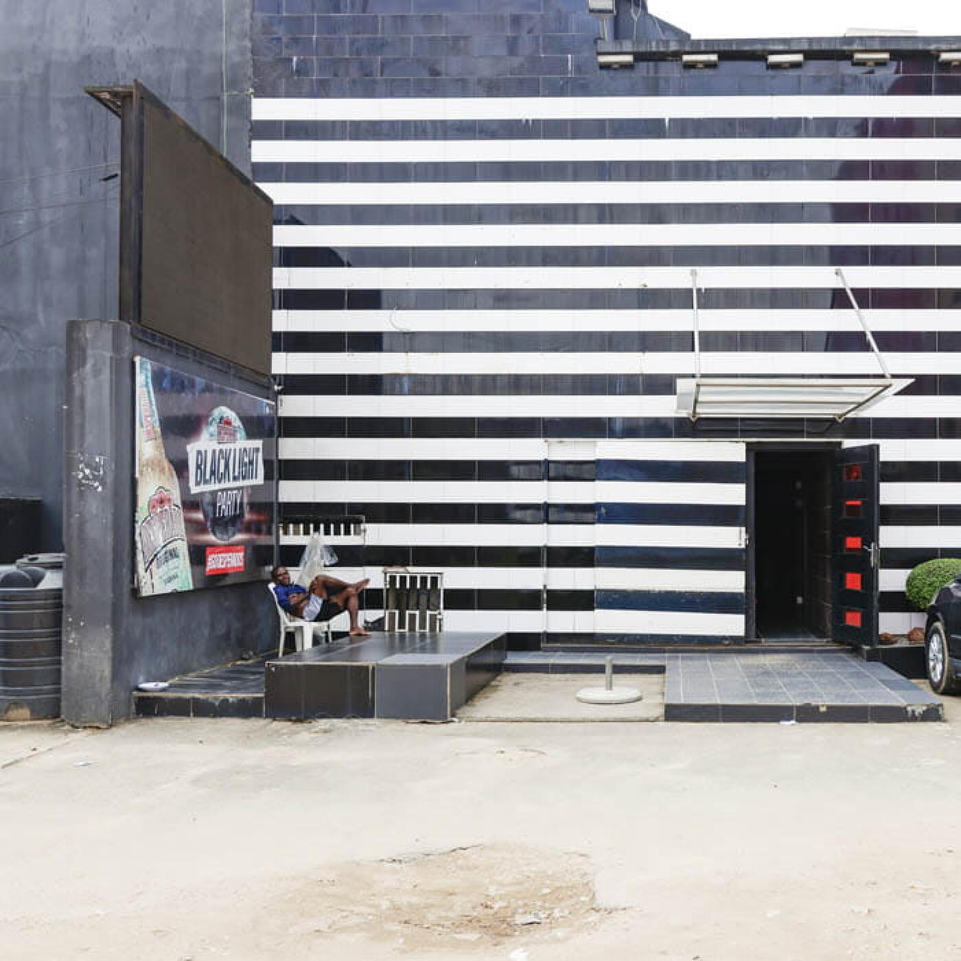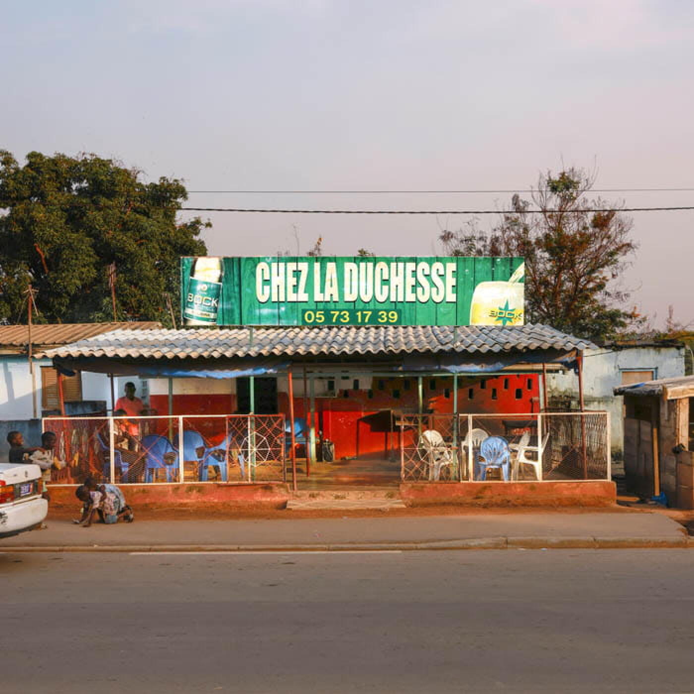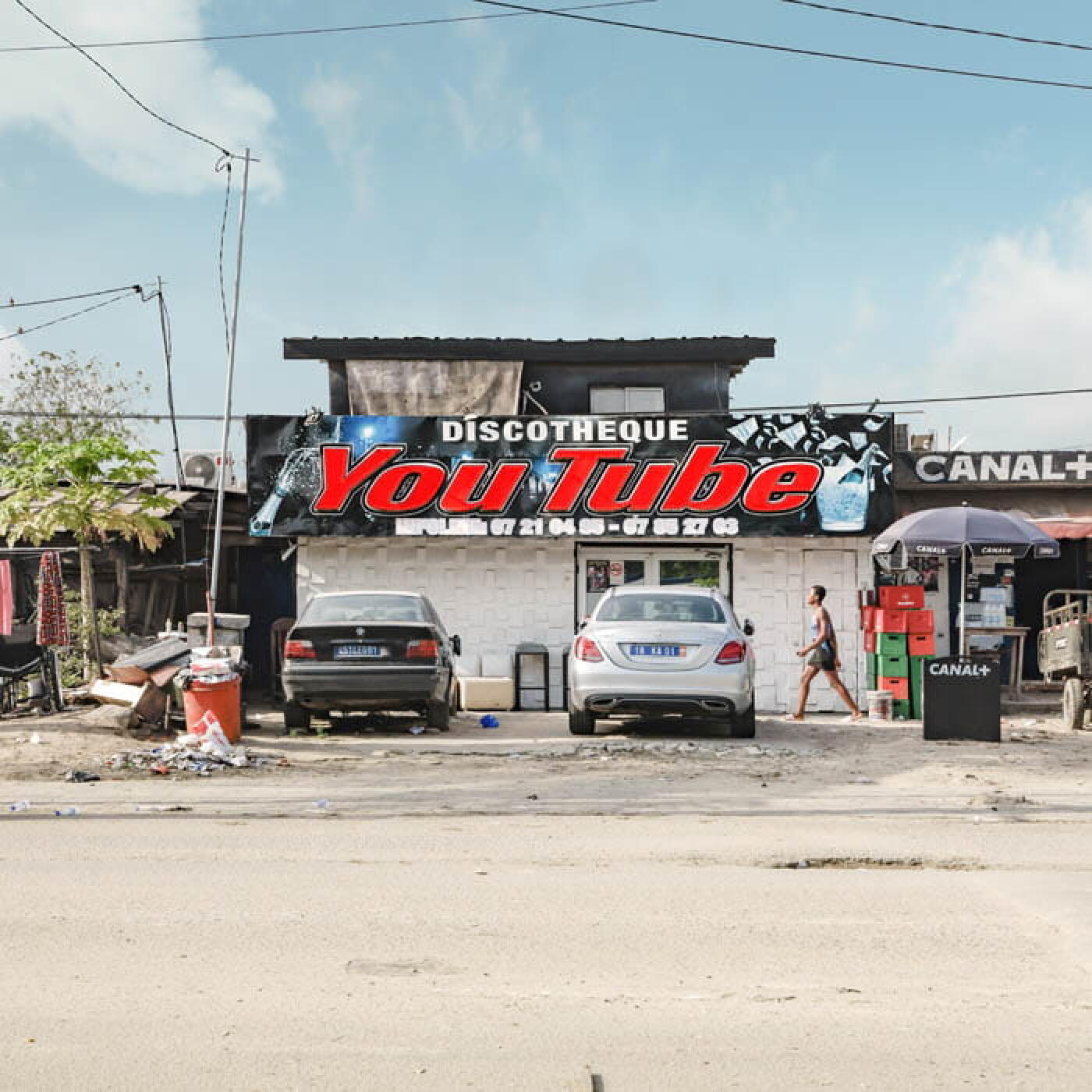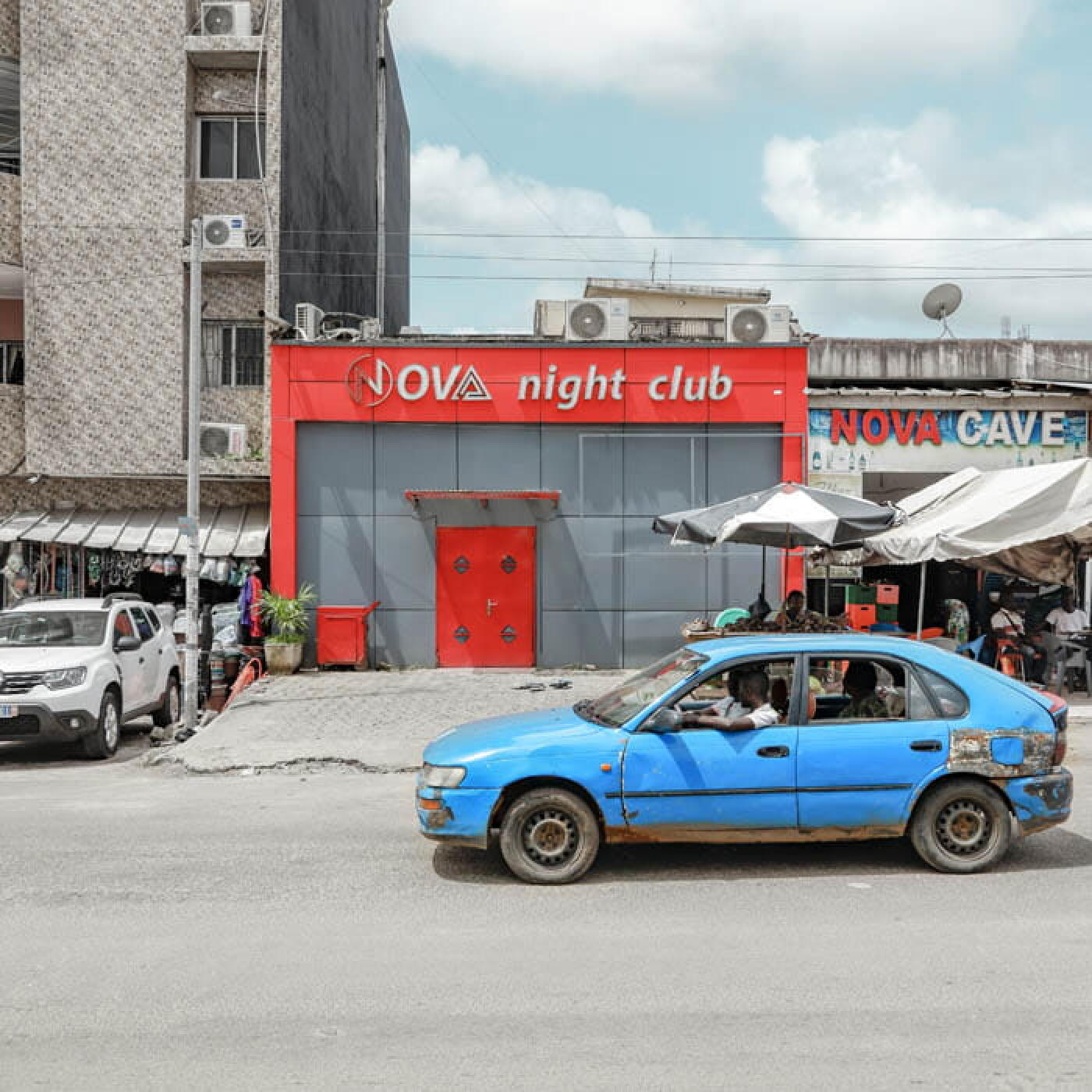 Cette fois-ci, c’est une facette inattendue de la Côte d’Ivoire qui nous est dépeinte par ces photos colorées et graphiques de clubs saisis dans leur environnement immédiat. Ils portent des noms très contemporains, TikTok, YouTube, Mont Blanc, Le Saint Germain et, plus classique, Taboo Lounge ou VIP discothèque, au total des appellations attrayantes qui valorisent et séduisent le noctambule venu partager sa part de rêve et de rencontres.