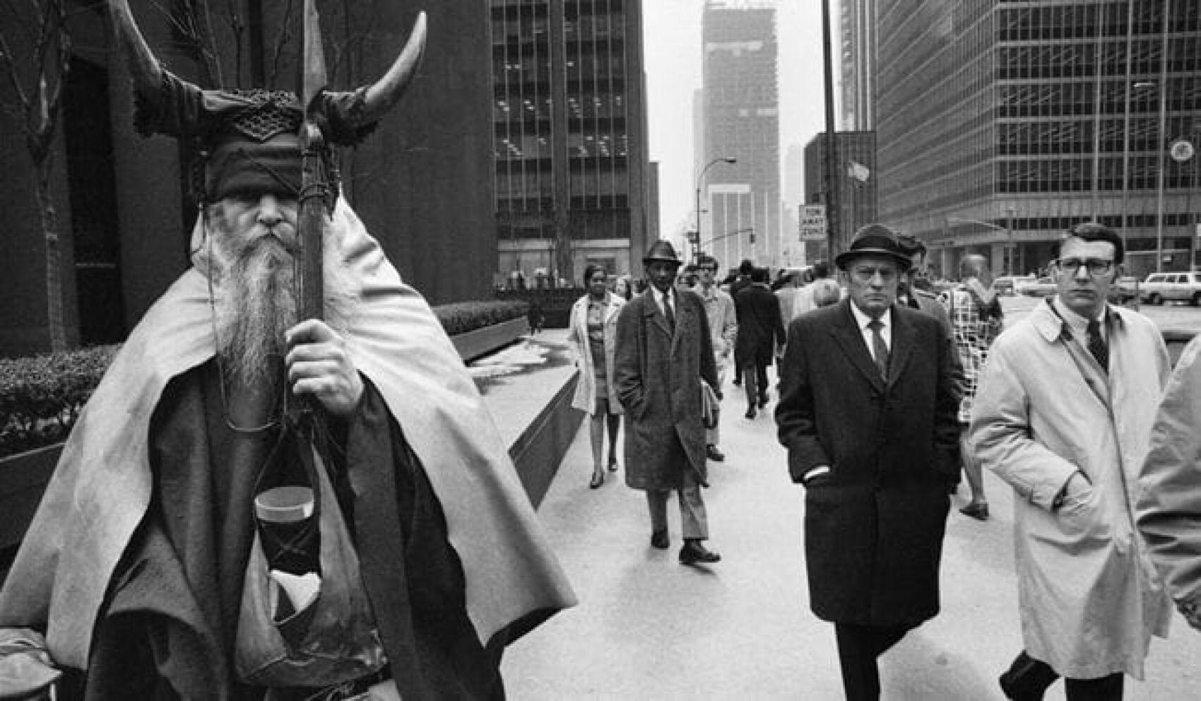 SDF par choix, histoire de consacrer toutes ses maigres ressources au développement de sa musique, il s’attife en viking galactique, explore un univers sonore qu’il est seul à voir dans sa tète, quelque part entre les sonates de Bach et les pulsations tribales des peuples primitifs, séduit les théoriciens de la musique minimalistes comme Glass ou Riley, devient une icône de la Beat Génération, sort des disques totalement à part, disparait, passe pour mort, ressurgit en Europe, joue avec Stefan Eicher, fait même une apparition chaotique aux Transmusicales, se retrouve samplé par Mr Scruff (tube planétaire) et disparait en 1999 après un dernier concert au festival Mimi d’Arles…