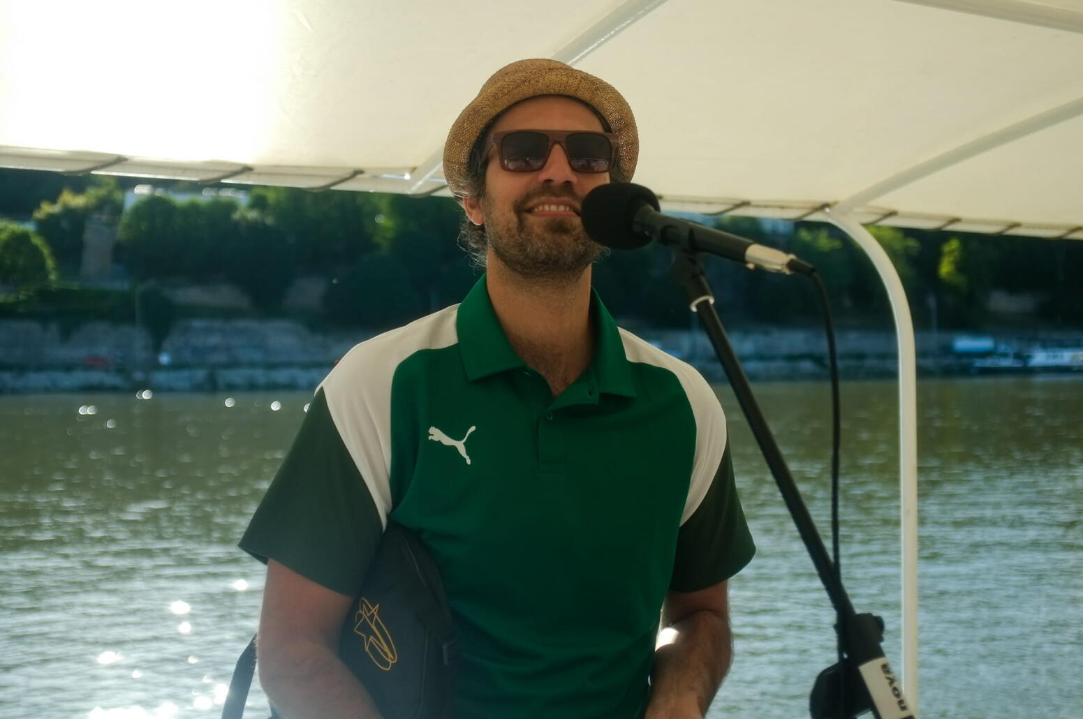 Garçon d’Ipanama, il a grandi à Rio de Janeiro dans une communauté d’anciens prisonniers et d’artistes convertis. Dans son enfance, il joue ses premières notes sur une guitare sous l’œil attentif de Wanda Sá, l’une des figures emblématiques de Bossa Nova. De la comédie musicale avec la compagnie Simaka à la tropicale base avec le projet Sociedade Recreativa en passant par le traditionnel foro bresilien avec son groupe Foro de Rebecca, João ne chôme pas. C’est en 2016 qu’il rencontre Bruno a.k.a. Patchwork avec lequel il fera son premier album Natureza, pour accoucher de leur second album, 4 ans plus tard en 2021 : Navegar. João Selva est solaire, et il est temps de le laisser rayonner, en live, juste après la mini bio d’Antoine Boj, toujours aussi mirobolante.