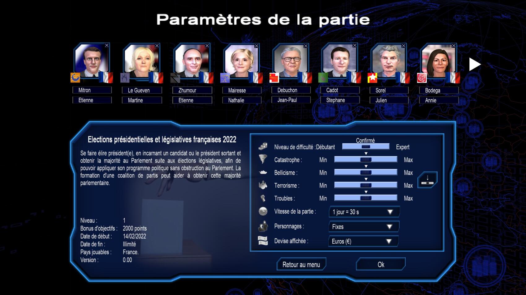 On s’est arrêté avec lui sur la dernière version de leur jeu né en 2004, Power and Revolution. On peut y diriger n’importe quel pays et être confronté à des élections. Dans le jeu, on est en janvier 2021, à quelques quelques semaines du lancement des campagnes pour les élections présidentielles françaises.