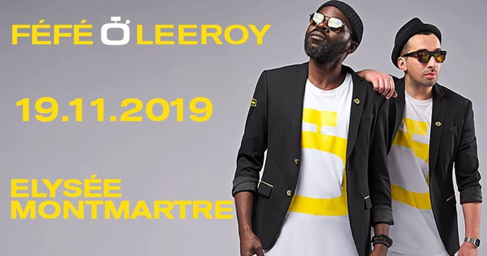 Féfé & Leeroy | Mardi 19 novembre de 20h00 à 23h00 à l’Élysée Montmartre, 72, boulevard Rochechouart, 75018 | Évent fb ici