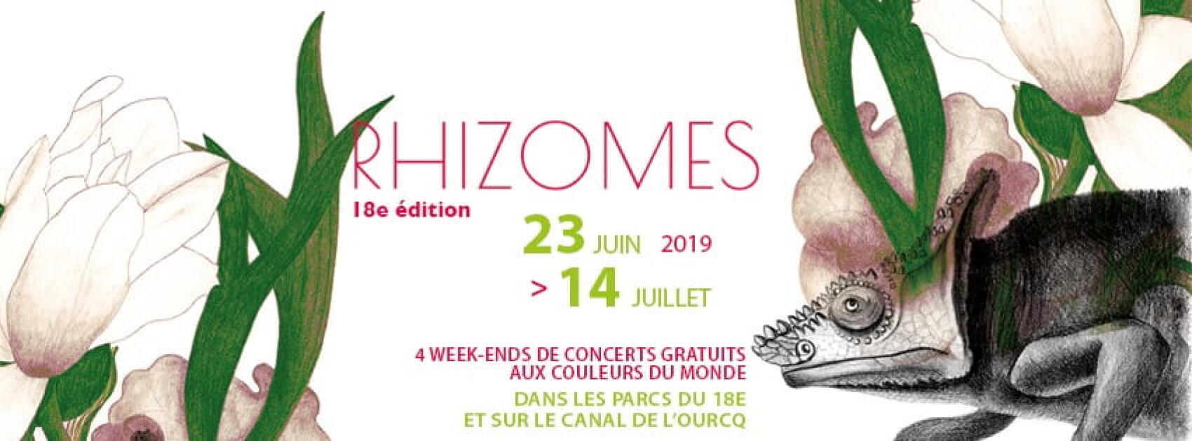Festival Rhizomes | 4 week-ends de concerts gratuits aux couleurs du monde dans les parcs du 18e et sur le canal de l’Ourcq (Paris) | du 23 juin au 14 juillet | Gratuit pour tous | Suivez la programmation sur l’évènement facebook ici.