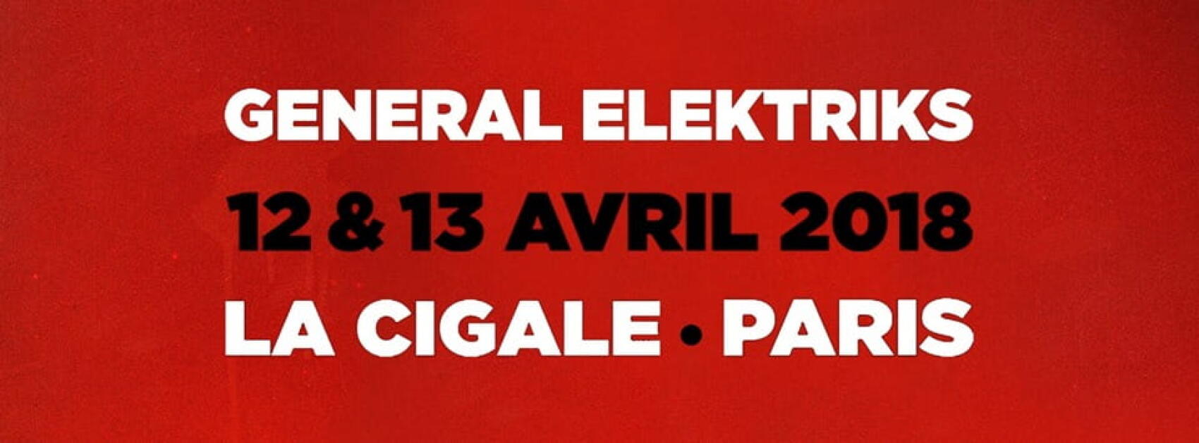 General Elektriks | Paris || jeudi 12 et vendredi 13 avril 2018 || à La Cigale, 120 Boulevard de Rochechouart dans le XVIIIème || métros Pigalle Abbesses || ici l’event || 27 30 euros