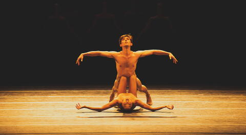 Commençons par cette dernière, d’ailleurs. C’est un ballet en un acte, créé en 2008. Sur un plateau baigné d’un crépuscule rougeoyant, les danseur.ses y détaillent leurs mouvements à la jointure du contemporain et du néo-classique. Appelant en écho l’art de la silhouette et du théâtre d’ombres chinoises, « Within the Golden Hour » célèbre l’approche du soleil des loups dans une fantasia chorégraphique fluide et limpide toute droite issu de l’imagination de Christopher Wheeldon, passé par le Royal Ballet de Londres, le New York City Ballet ou le Sadler’s Wells Theatre. Le tout sur un musique 100% italienne – du Vivaldi complété par les partitions du pianiste Ezio Bosso, emporté depuis par une dégénérescence neurologique couplé au Covid-19.
