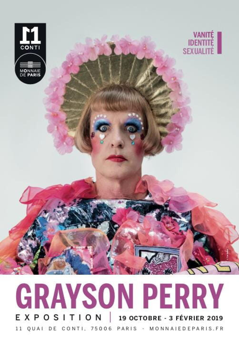 Grayson Perry. Vanité, Identité, Sexualité. Monnaie de Paris, 11, quai de Conti, 75006, Paris, du mardi au dimanche de 11h à 19h. Nocturne le mercredi jusqu’à 21h. Du 19 octobre 2018 au 21 février 2019.