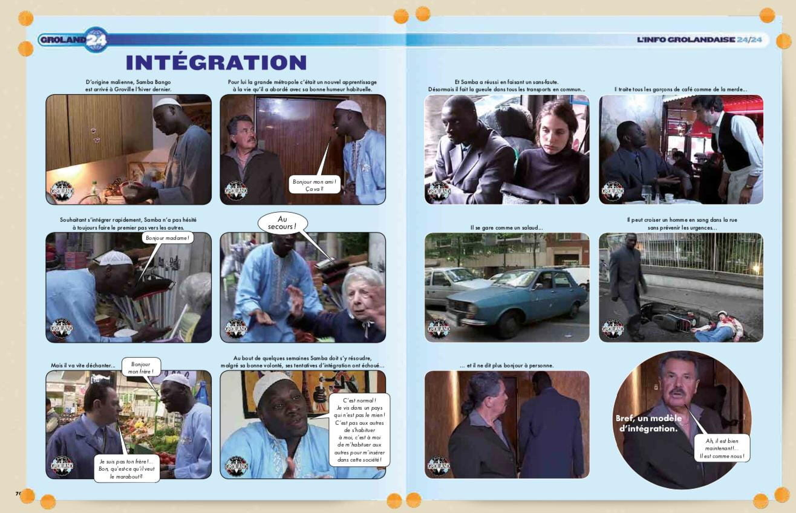 Pour  nous re-montrer leur programmes télés, ils les ont mis en séries de photos avec dialogues, bulles de BD, à la suite, comme dans les vieux journaux . histoires d’amour et de haine à la Grolandaise. Et en plus, les images télés, imprimées en presse-papier, sont encore plus tristes qu’au naturel !