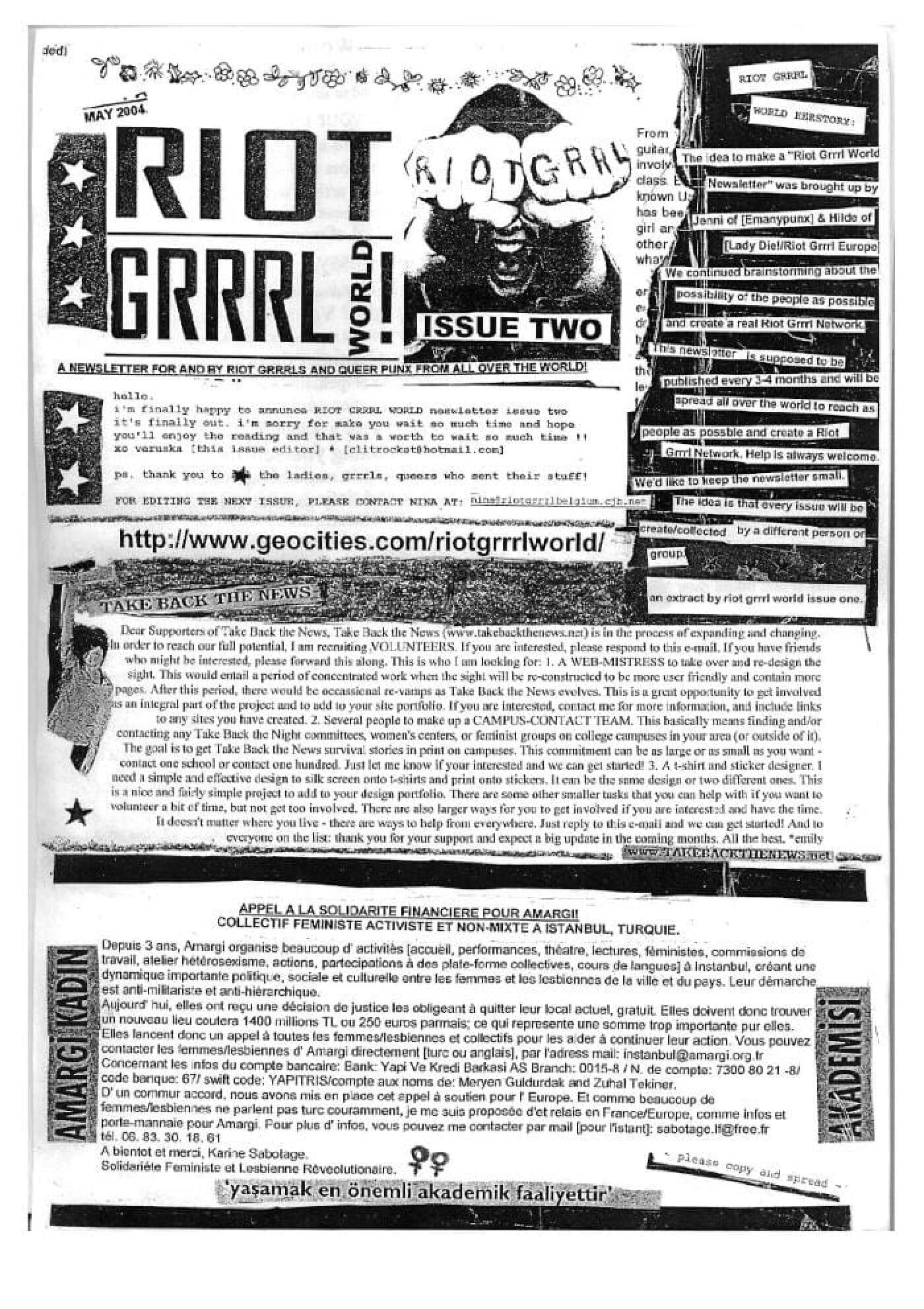 L’année suivante, en 1992, et après avoir été rejoint par le garçon Billy Karren, Bikini Girl fonde, aux côtés de Bratmobile (le trio est composé d’Allison Wolfe, d’Erin Smith et de Molly Neuman, et vient cette fois de Washington), le fanzine Riot grrrl, une publication qui scellera définitivement la naissance du mouvement du même nom. Le magazine, et le mouvement dans sa globalité (dont la plupart des membres se sont rencontrés, physiquement parlant, au sein d’un festival qui leur offre une nuit entière, le Pop Underground Convention, en août 1991), sont bientôt soutenus par des grands noms de la scène rock indépendante, de Kim Gordon à Ian MacKaye en passant par Kurt Cobain. La légende raconte même que c’est Hanna, proche de Kurt Cobain, qui aurait suggéré au chanteur de Nirvana le titre du tube planétaire « Smells Like Teen Spirit ». Sur un mur délabré, elle aurait en effet pris le soin de taguer ces mots : « Kurt Cobain smells like Teen Spirit spray ». Fun fact.