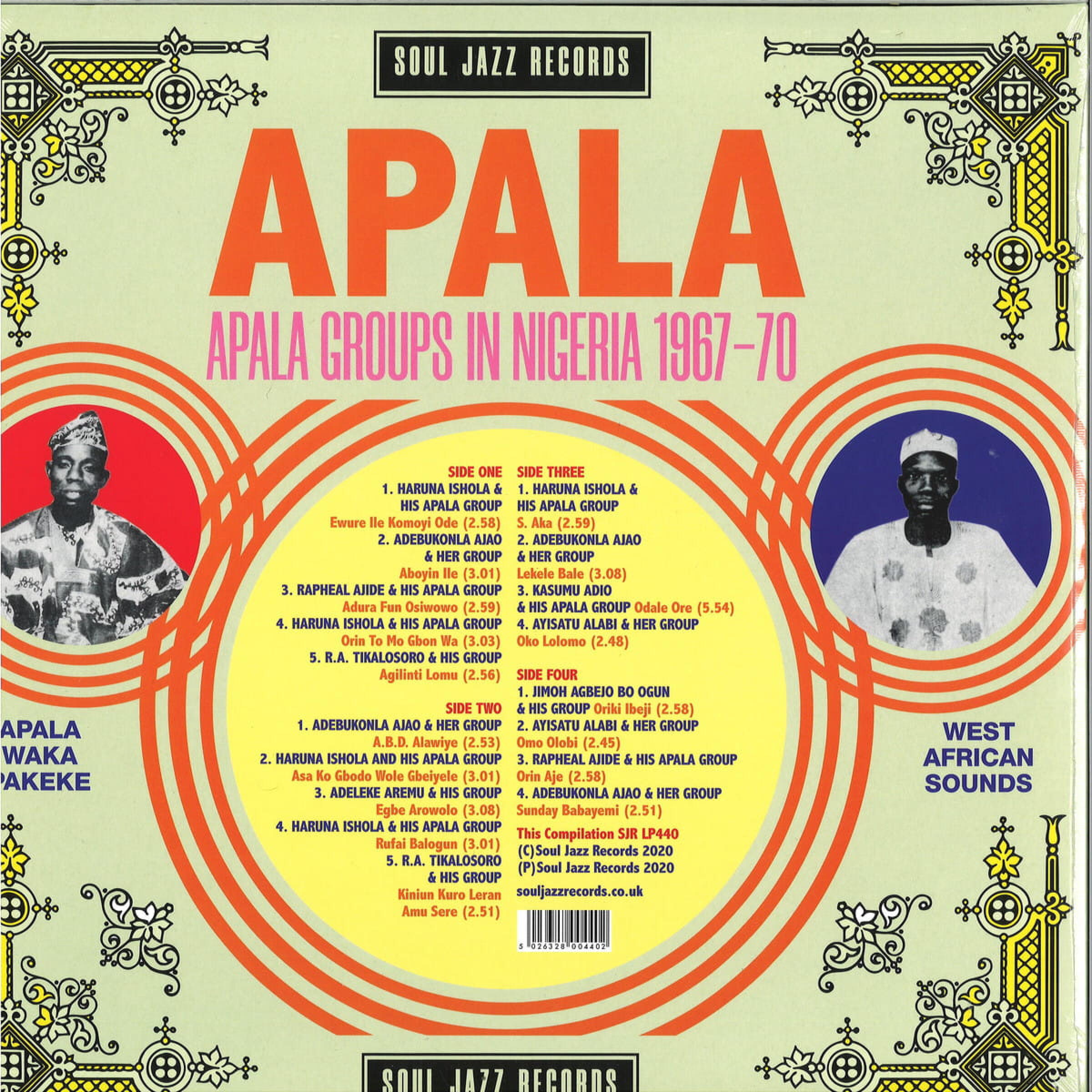 Apala groups in Nigeria (1967-1970). Soul Jazz Records. CD 18 titres. Avec un booklet historique complet de 25 pages (existe aussi en double LP / vinyle et en Digital). Note : Il existe d’autres styles nigérians néo-traditionnels : Waka et Sakara.