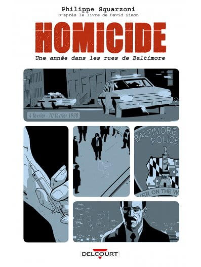 Je vous avais déjà chaudement recommandé la lecture d’Homicide chez Delcourt, adaptation en bande dessinée des récits de police de David Simon (The Wire) par Philippe Squarzoni. Je me souviens, j’avais même fait une vanne sur le nom de l’auteur qui faisait très inspecteur (inspecteur Squarzoni). Bref, je renouvelle mes félicitations (et ma vanne) pour le volume 2 de cette chronique d’un commissariat de Baltimore, forcément réaliste, lente, minutieuse – et désespérante – dont la fluidité narrative reste remarquable, ce qui n’est pas si courant dans l’exercice des adaptations de livres en BD.
