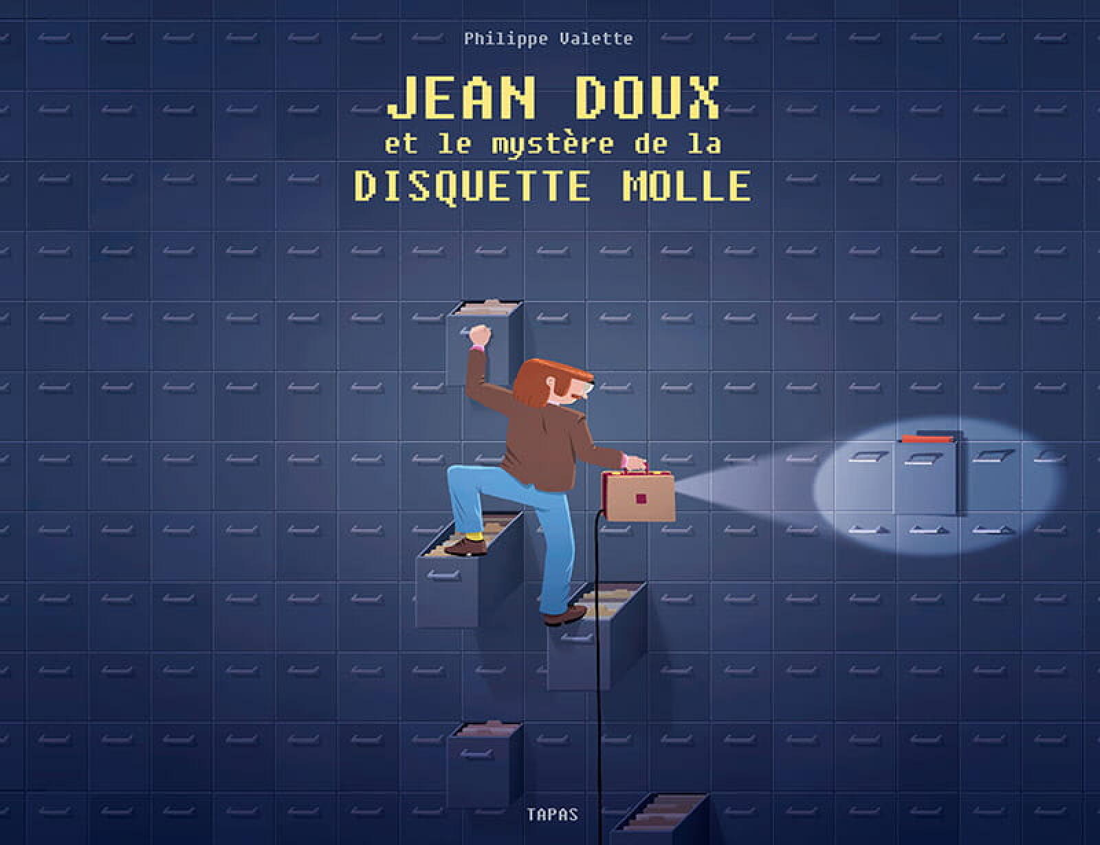 On avait dit du bien aussi de « George Clooney » l’absurde machin débile et cheap de Phillippe Valette, tout en ayant conscience des limites de l’exercice, le volume deux était d’ailleurs dispensable. Jean Doux et le mystère de la disquette molle (Delcourt encore), qui pourrait avoir pour pitch : Indiana Jones vs The Office, est tout aussi crétin, absurde, et cheap que George Clooney mais parvient avec son intrigue délirante à vous tenir en haleine, tout en vous faisant rire comme une baleine (je n’ai pas résisté à la rime, désolé) – ce qui n’est là non plus pas un exercice évident.