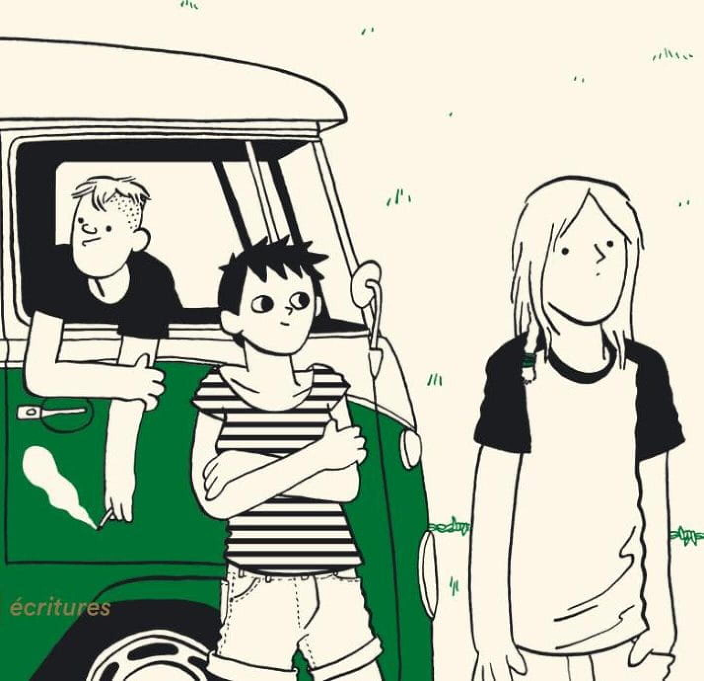 En revanche, on avait encore jamais dit de bien de Vincent Cuvelier, Max de Radiguès, Sylvain Runberg ou Victor Santos. Les deux premiers signent La Cire Moderne chez Casterman. Attention graphiquement c’est super amateur, on dirait un dessin de fanzine d’un type de 18 ans en 1982. Néanmoins c’est tout à fait lisible, première qualité d’un auteur bd (et pas si courant dans les fanzines) et, surtout, ce road movie des routes de France se fait avec des personnages exclu de la fiction française (parisienne quoi) : des travellers un peu ravers, un peu fauchés avec leur camionnettes, leur shit et leurs chiens (bon la, il n’y a pas de chiens, mais c’est pour vous donner une idée). Bref, on n’est pas chez, mettons, Dupuy et Berberian, ça change et ce n’est pas inintéressant.