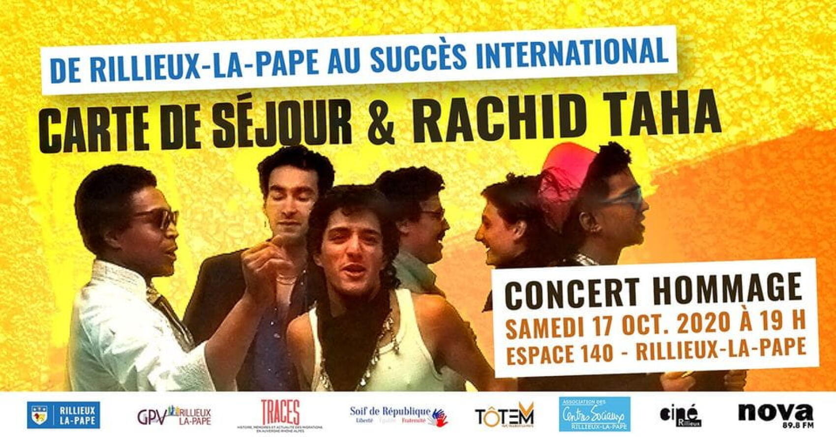 Du vendredi 16 au dimanche 18 octobre 2020, la ville de Rillieux-la-Pape rend hommage à Rachid Taha et son groupe Carte de Séjour. Ces trois jours seront ponctués d’animations, rencontres, exposition, projections, concert…