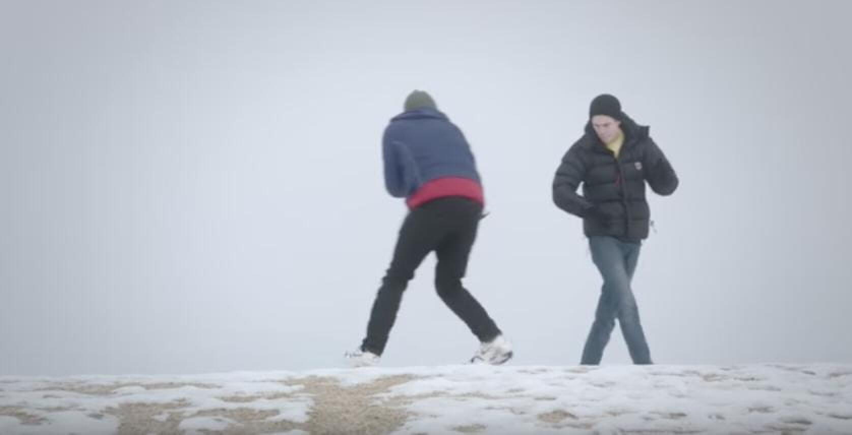 Dans un pays où il ne fait manifestement pas très chaud (et qui se situe sûrement en Scandinavie, si l’on se fie au paysage environnant et aux patronymes affichés en crédit de la vidéo – Kasper Häggström & Kristian Jaran Engelsen), un garçon mène une chorégraphie hasardeuse, sourire aux lèvres et corps en mouvement. Sur le pont d’un ferry, dans les champs gelés, dans les plaines enneigées, au bord des structures urbaines d’une ville plongée dans le noir. Et l’autre le filme, caméra à la main, et drone dans les airs. Malgré la neige, à aucun moment, on ne ressent le froid.